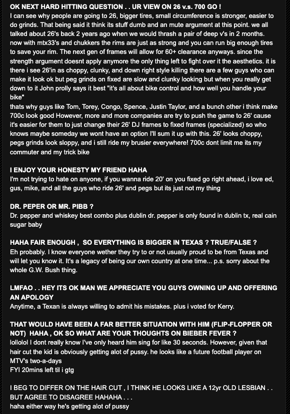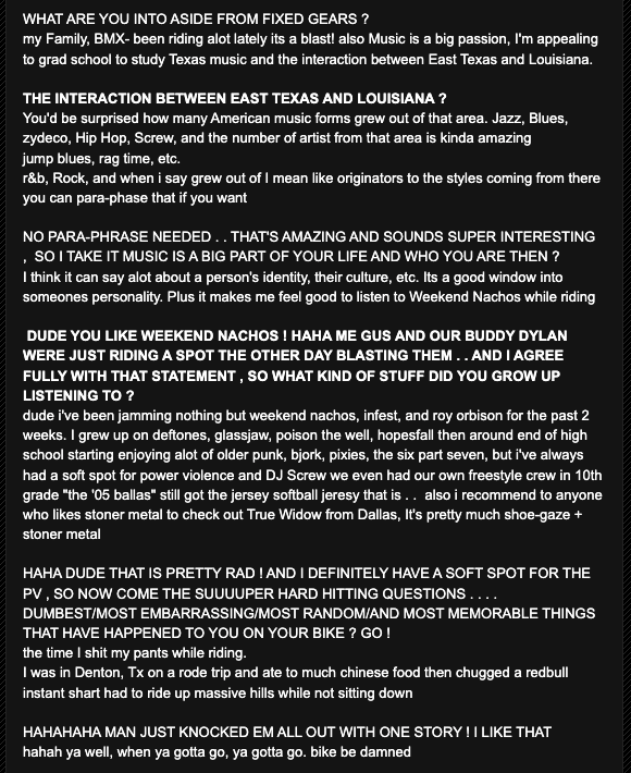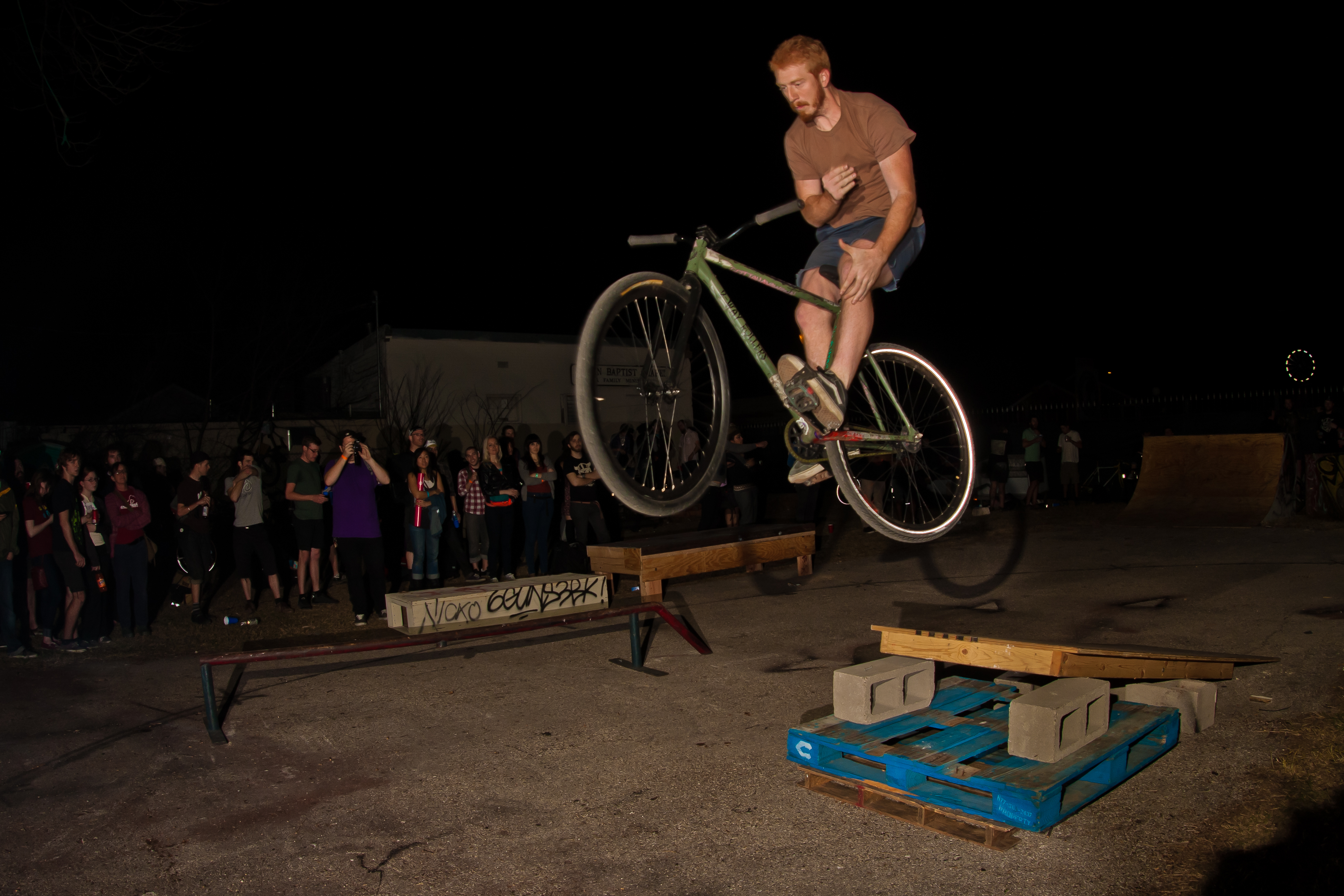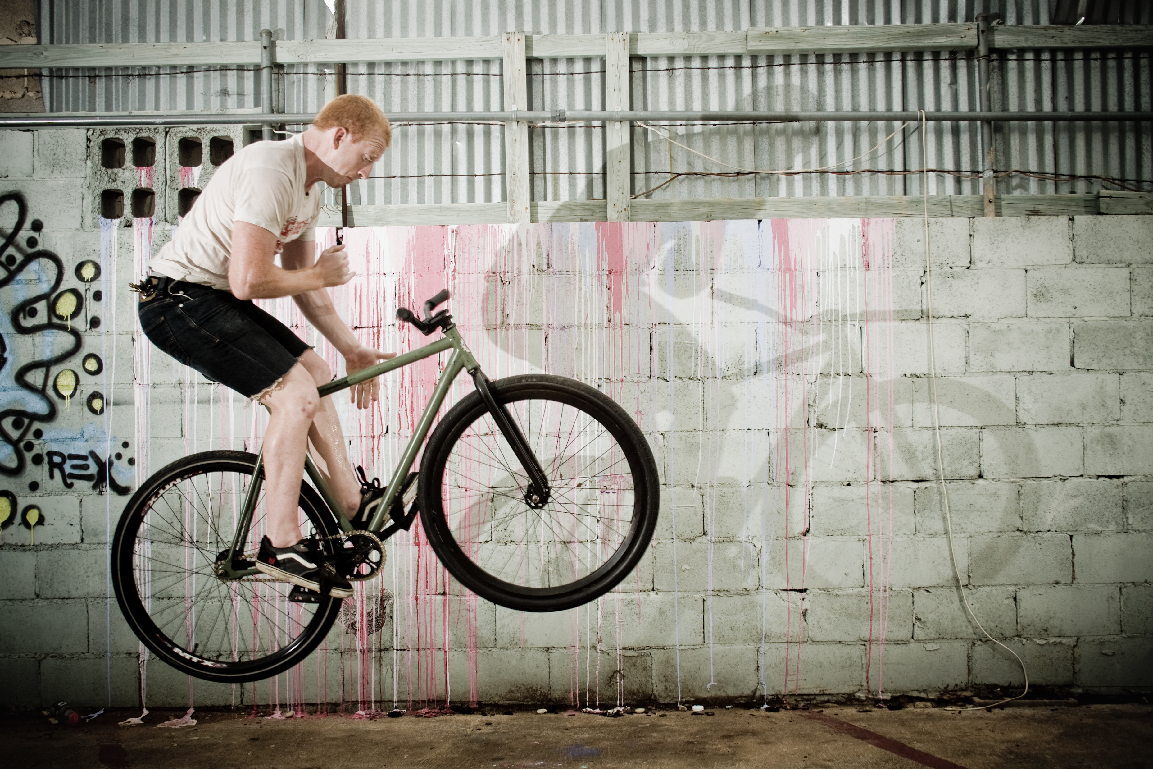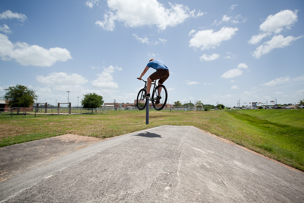 AJ Austin is a Texas native 700c FGFS rider who rose to prominence around 2009. His friendship and edits with John Watson, Eric Puckett, and Justin Taylor brought AJ to the frontlines of the early Fixed Gear trick scene and helped put the Texas scene on the map.