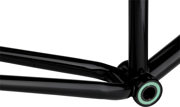 The Def Wish continues the evolution of fixed freestyle bikes and sets a new standard for monster fixed excellence. It’s got a mid BB, 14mm dropouts, 45/45 internal headset, and improved geometry. We’ve also redesigned the headtube, gussets, rear end, and given it larger overall tubing diameters. The crown jewel of this beast though, is that it fits a 29’er tire slammed without the need for dramatic dimples on the chainstays.