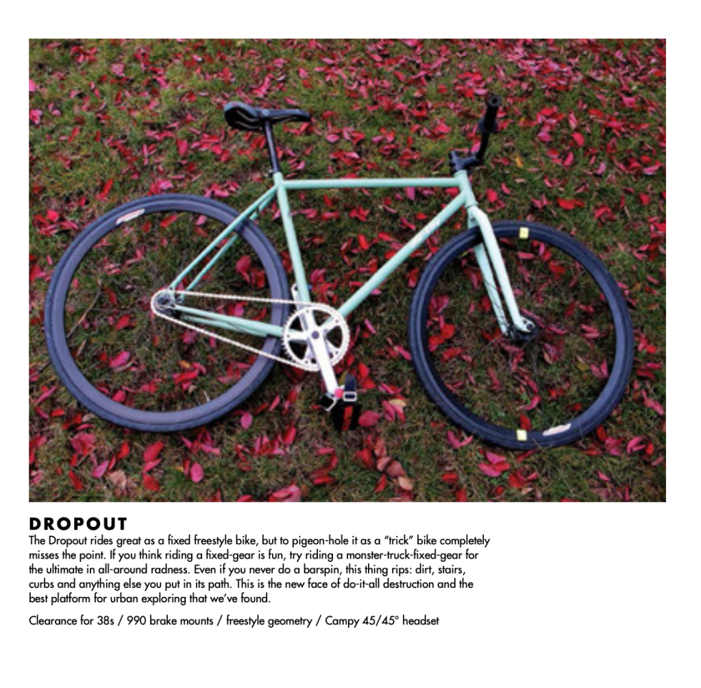 In short the Dropout is an extremely capable urban platform that can be built up in a myriad of configurations to suit your riding style and needs. There are a ton of ways to have fun on this bike.