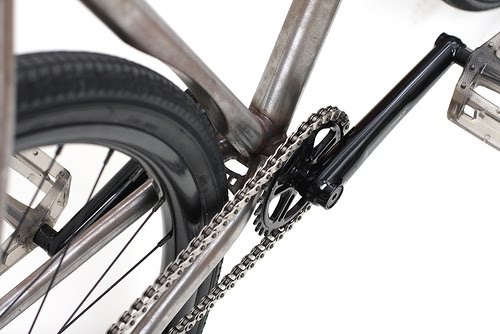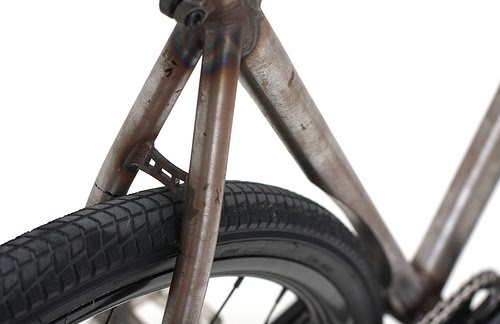 THE NSF IS DESIGNED TO BE MORE COMFORTABLE THAN A TRADITIONAL FIXIE’, WITH ENOUGH SPACE TO LET YOU THROW THE BARS AND SUPER SHORT CHAINSTAYS. SO SHORT IN FACT, WE SCALLOPED THE SEAT TUBE IN RAT ROD FASHION. THIS IS ALSO ONE OF THE FIRST FIXIE’S TO USE THE TAPER LOCK DROP OUT SYSTEM. THIS SIMPLE SYSTEM ELIMINATES THE NEED FOR A CHAIN TENSIONER AND KEEPS YOUR WHEEL IN PLACE WITH THE USE OF 2 TAPERED WASHERS.