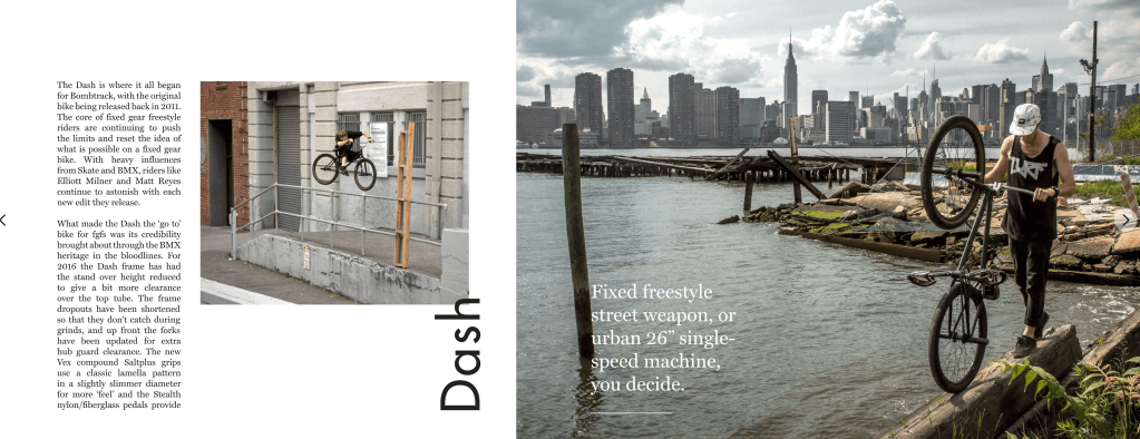 The Dash is where it all began for Bombtrack, with the original bike being released back in 2011. The core of fixed gear freestyle riders are continuing to push the limits and reset the idea of what is possible on a fixed gear bike. With heavy influences from Skate and BMX, riders like Elliott Milner and Matt Reyes continue to astonish with each new edit they release.