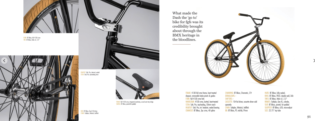 What made the Dash the ‘go to’ bike for fgfs was its credibility brought about through the BMX heritage in the bloodlines. For 2016 the Dash frame has had the stand over height reduced to give a bit more clearance over the top tube. The frame dropouts have been shortened so that they don’t catch during grinds, and up front the forks have been updated for extra hub guard clearance. The new Vex compound Saltplus grips use a classic lamella pattern in a slightly slimmer diameter for more ‘feel’ and the Stealth nylon/fiberglass pedals provide improved grip and a solid base for pedal grinds.