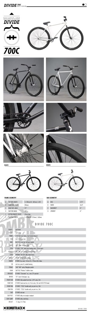 The DIVIDE feeds the demand for a long lasting urban fixed gear bike, which is both an undestroyable courier work-bike for daily ‘(ab)use’ and has the advantageous characteristics of a fixed gear freestyle bike. This is a bike that the market has so far been unable to offer, with other brands opting only for the 26” route. The DIVIDE is equally happy going for a “light” tricking session as it is cutting across the city at blistering speed while in total comfort. Jump curbstones and stairsets, throw your bars while still being able to commute to the office, school or university and mosh your urban area full speed ahead. This bike really is a daily companion.
