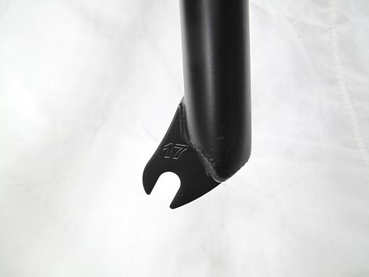BreakBrake17 Cobra V3 fork Description: n/a Details: Release Date: July 2012 Manufacturer: BreakBrake17 MSRP: Color(s): Black Black Nickel CP Wheel Size: 700c Gallery: Specifications: -MATERIAL:HEAT-TREATED 4130 CROMOLY STEEL -AXLE TO CROWN LENGTH:423mm/16.65〞 -STEER TUBE LENGTH:185mm -OFFSET: 22mm -WEIGHT:1.05kg -COLOR:ED BLACK, BLACK NICKEL, CP *FULL FLUTED TUBE* *CLEARANCE FOR 54C++ TIRES* See Also: BreakBrake17 Cobra V2 fork BreakBrake17 Charmer 26″ V2 frame BreakBrake17