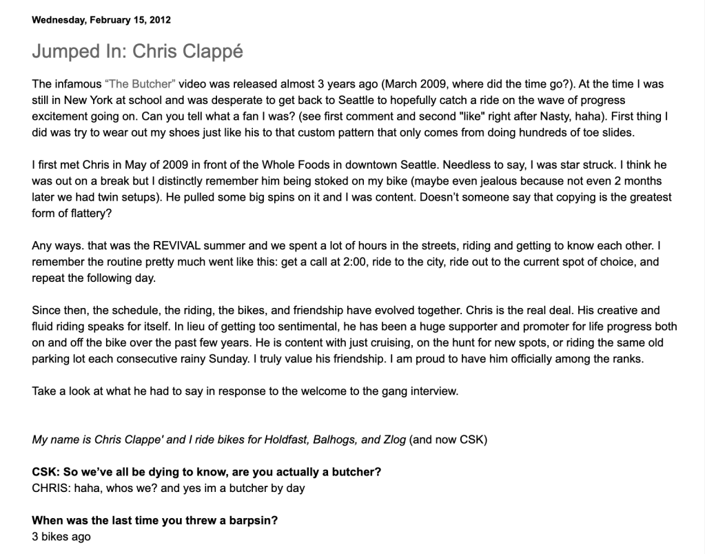 As well as a good rider, Chris became the key cameraman for the Seattle CSK crew, releasing multiple VX mixtapes and edits that made waves in the scene.