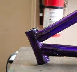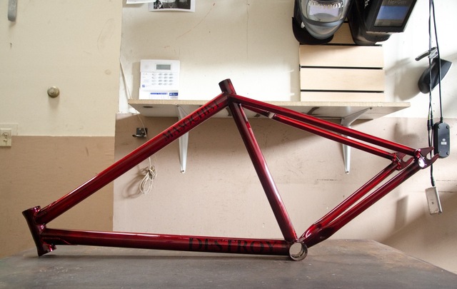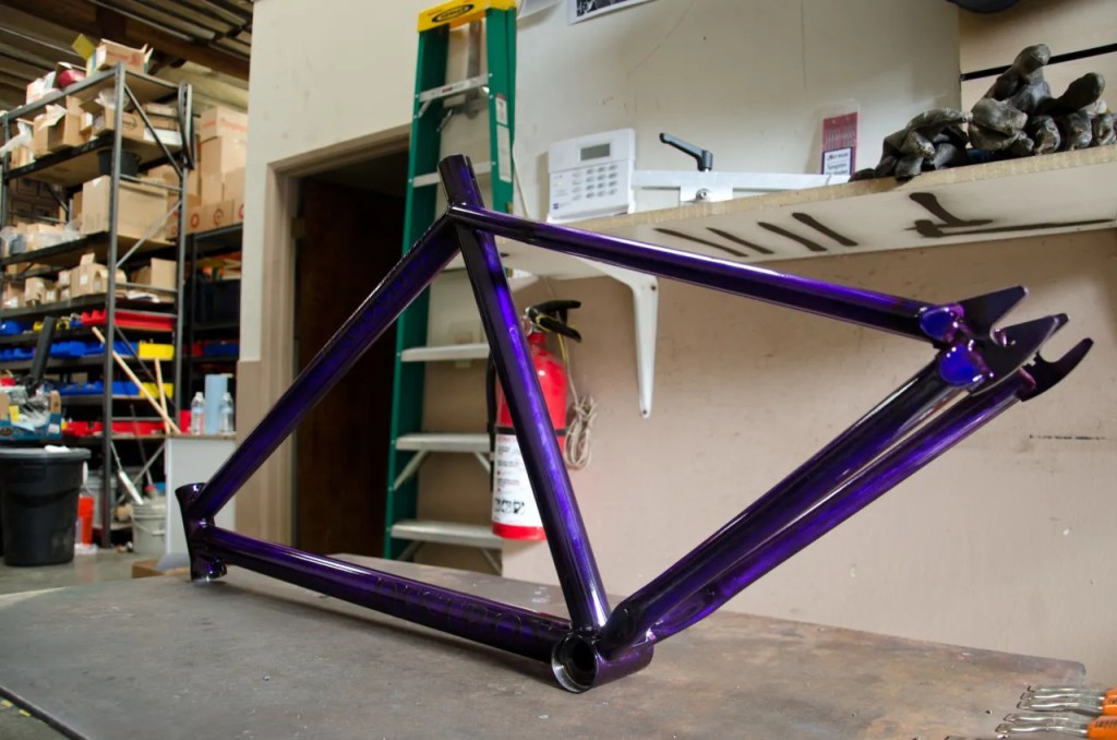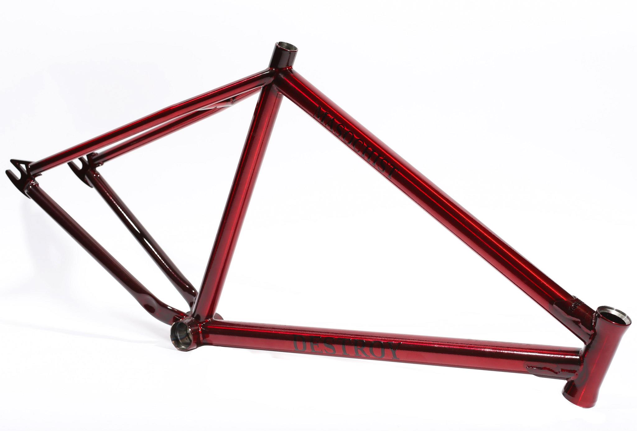 The Masochist V2 was designed with the shortest rear end in 26″ fixed, at just 14.875″ we built this frame to be responsive. It has 2.3 tire clearance and a 74.5 degree head tube angle. It is a completely upgraded version of the V1 with beefier chain stay tubing while still weighing in at under six pounds total. All frames were built in house by Destroy in Redwood City CA. There will be a total of 20 available in Translucent Black, Translucent Red, and Translucent Purple. Pre-orders ship Nov.1st and include a free 14mm hub.