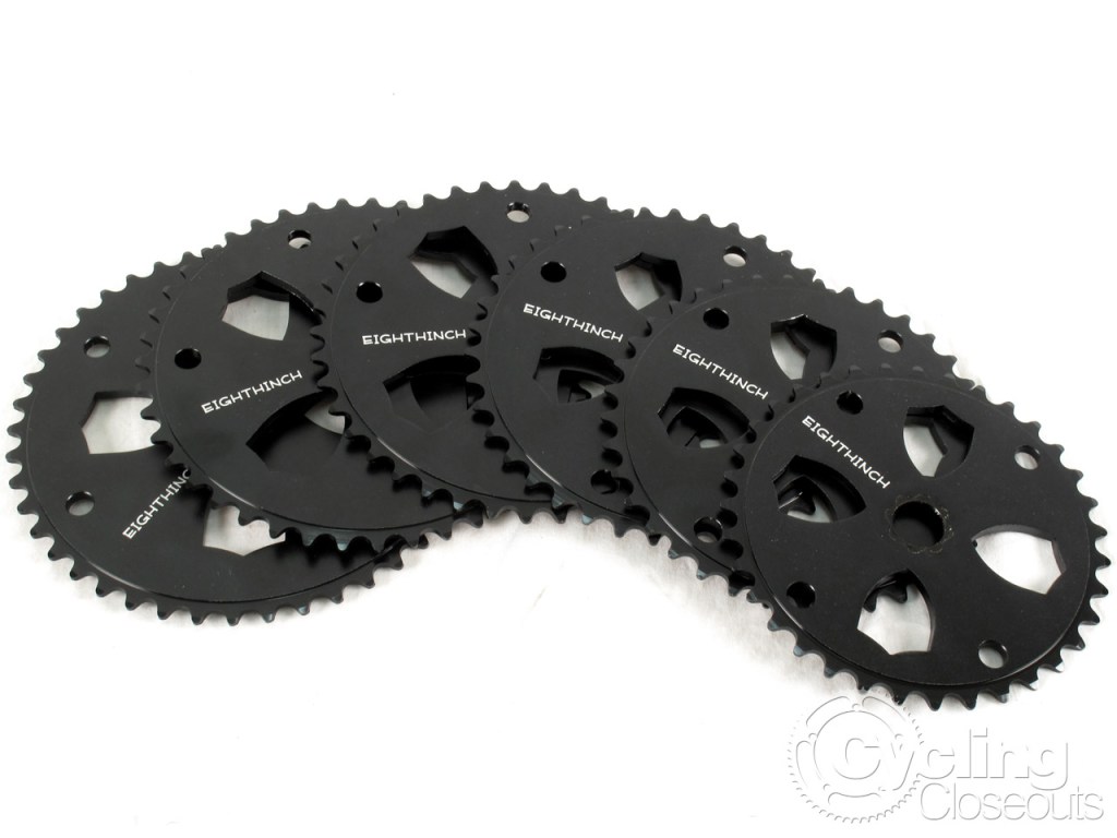 The Eighth-Inch 48 Splined BMX Style Chainring brings a super durable design to the Fixed Gear Freestyle and Bike Polo crowds. Made from 7075 Alloy, and machined to high tolerances- these chainrings can hold up to whatever you throw at them. Matches great with our EighthInch 48 Splined Crankset!