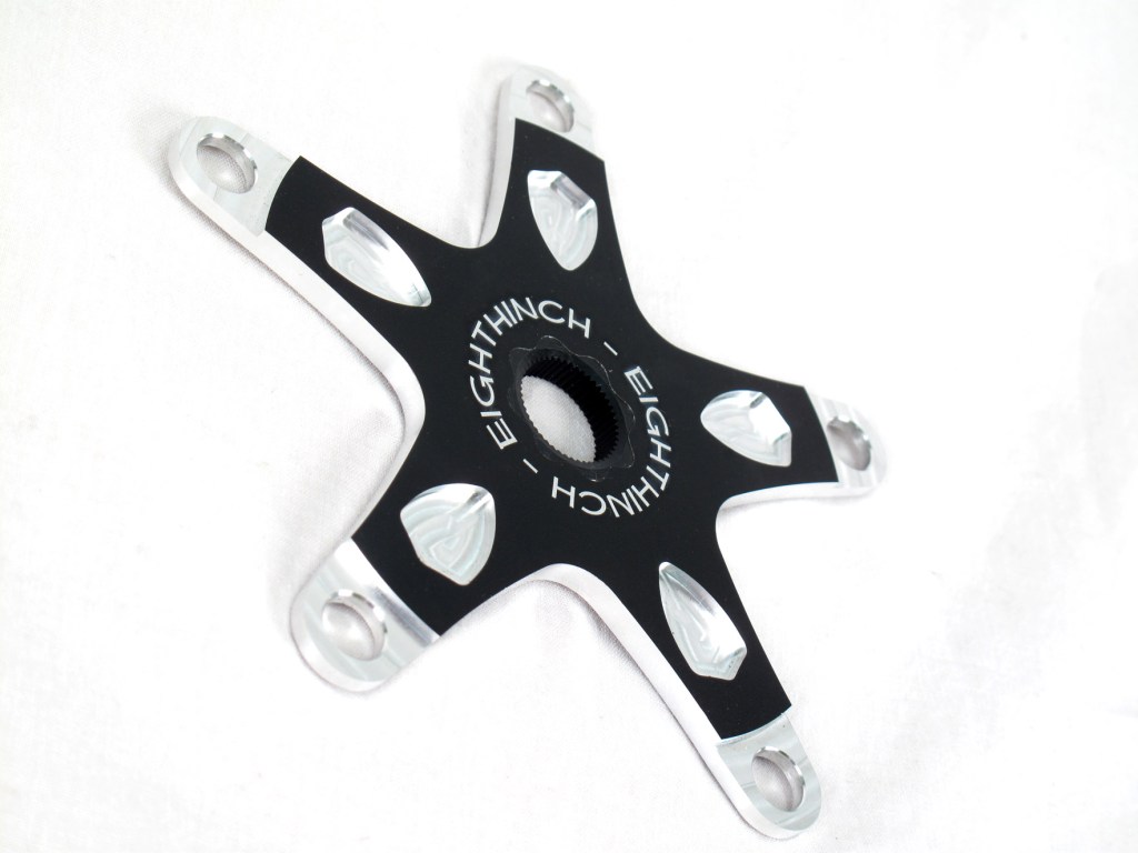 48 splined cranks are incredibly strong and can hold up to the back and forth torquing fixed gear riding puts on them. The chainrings made for them press on and fit using the same spline design. Since the 48 spline system was originally designed for BMX, chainring sizes can be pretty limited. Riders looking to run tooth counts in the 40’s may have trouble finding something. Our adapter mounts right on the spindle acting as a spider to mount any 130bcd chainring. Problem solved.