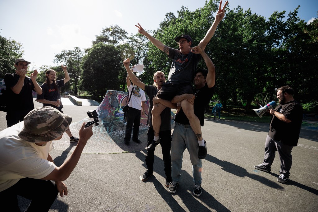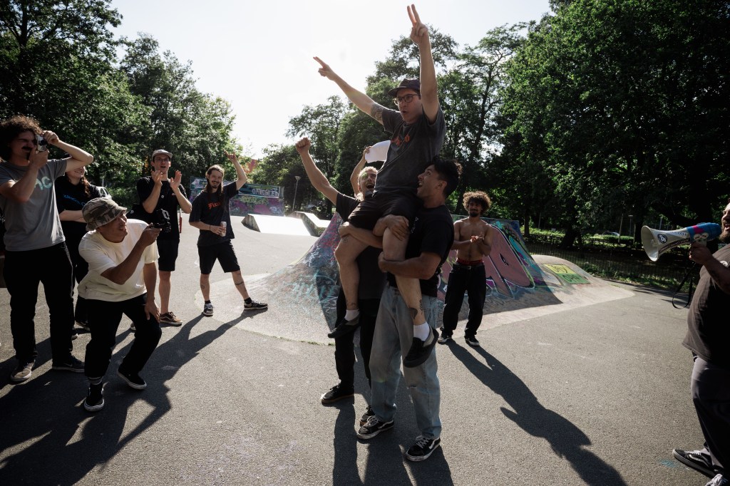After the competition, Crispyn premiered a new video of Youri and Ismael premiered a new edit of himself on a TV at the skatepark.