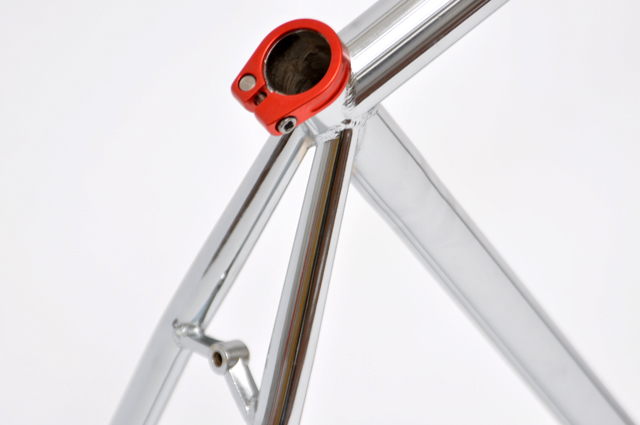 We’ve tweaked the classic fixie frame geometry to provide a little more space up front and a sloping top tube.to allow more room and manoeuvrability.