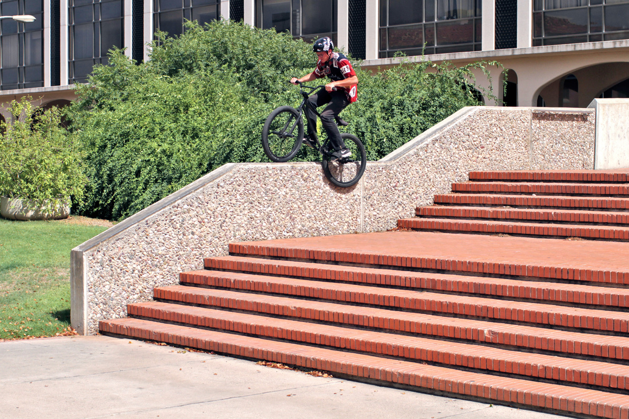 His riding is known for his creativity, often looking at spots and thinking of tricks that most riders wouldn’t. Although he has been known to try bigger tricks when the time comes.