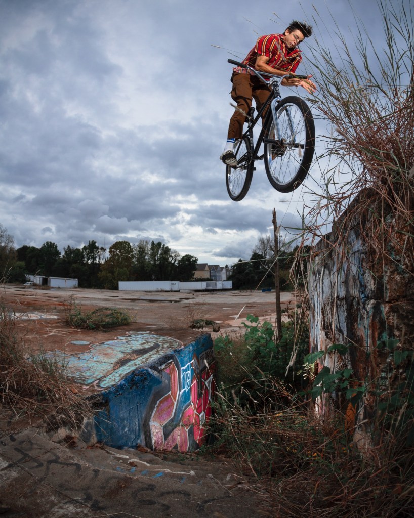 Johnathan was known for sticking with 700c wheels longer than most riders, but eventually switched to 26″ wheels in 2018 when he acquired a Ruff Bike Co. sponsorship.