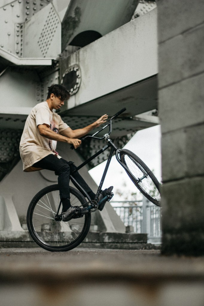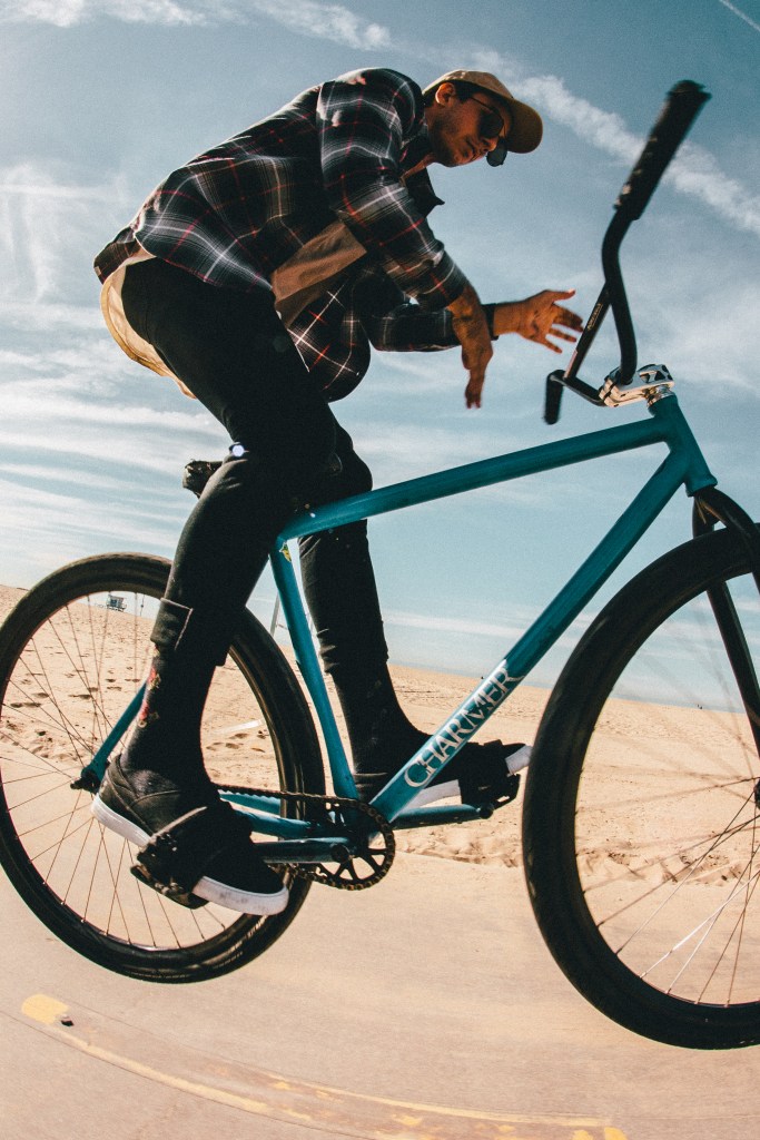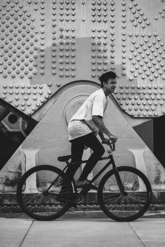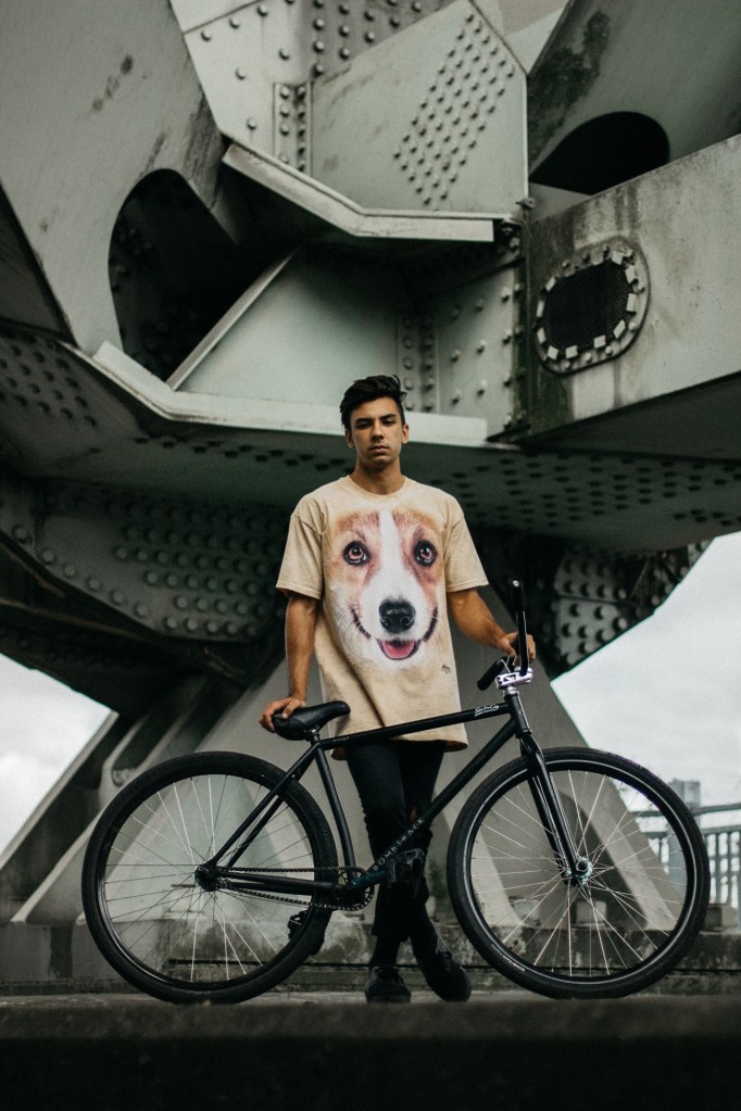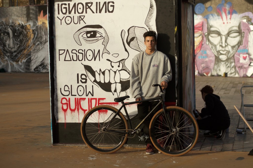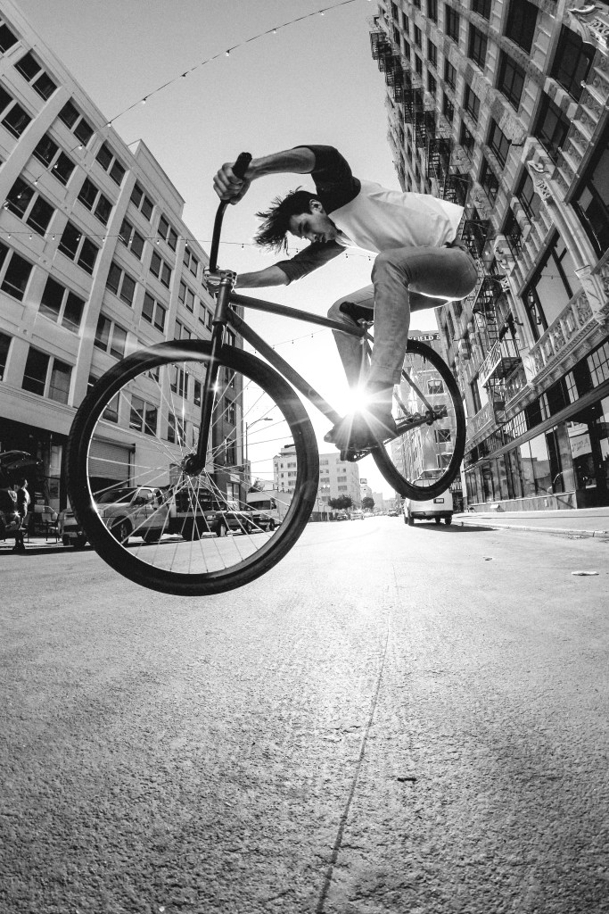 His crew, Suck My Cog, started releasing content in 2010 and has since become a leading name in fixed gear freestyle media. They host events, run a website, create content, and give riders a platform on their popular Instagram page.