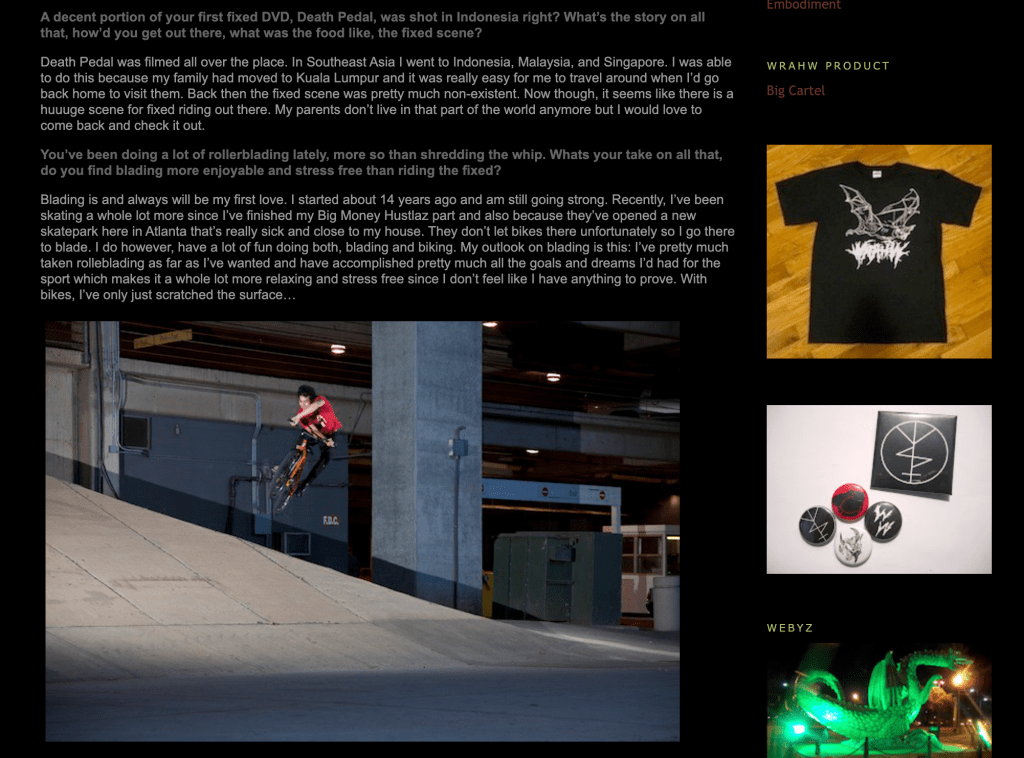 Coming from a Blading background, Kareem got into fixed gear bikes in 2006 as a hobby to accompany blading, but ended up consuming his life. With a background making skate videos, it was only natural for Kareem to also make fixed gear videos. As a result, he is the man behind some of the most popular fixed gear videos and DVDs, including Death Pedal, Death Pedal 2, Big Money Hustlaz, Southern Safari, and many more online edits.