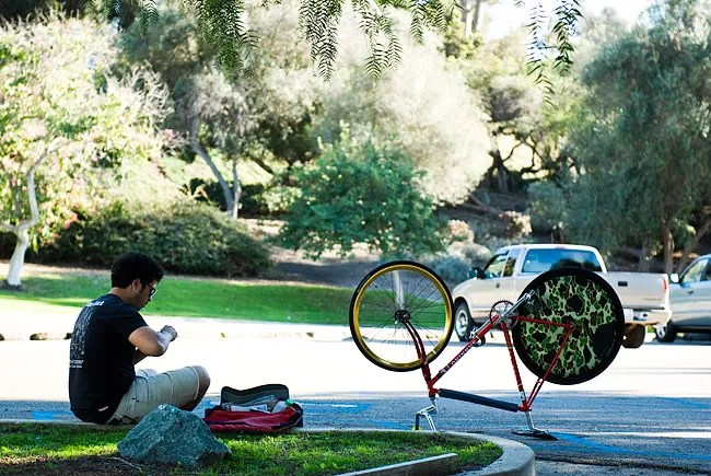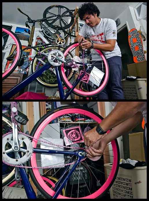 Coming from a Blading background, Kareem got into fixed gear bikes in 2006 as a hobby to accompany blading, but ended up consuming his life. With a background making skate videos, it was only natural for Kareem to also make fixed gear videos. As a result, he is the man behind some of the most popular fixed gear videos and DVDs, including Death Pedal, Death Pedal 2, Big Money Hustlaz, Southern Safari, and many more online edits.