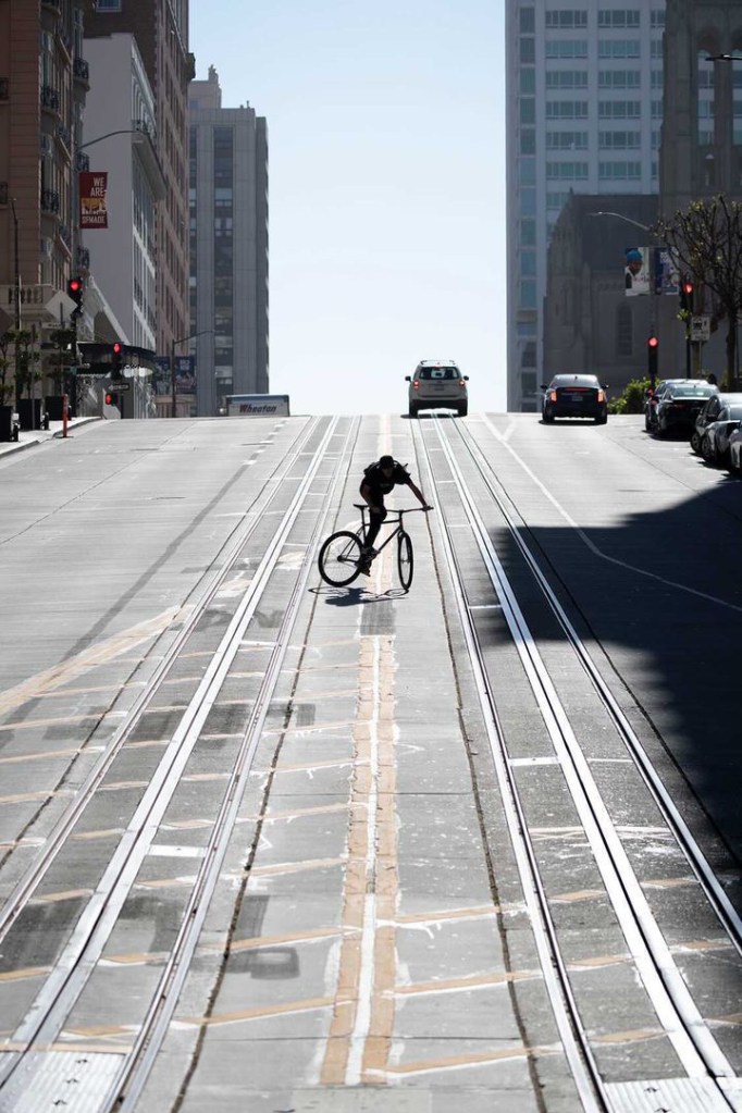 THE FORK: The transformation began with prototyping a couple different fork options before landing on what you see here. We went with a 420AC fork with shorter (29mm) dropouts than standard (referencing the Fumanchu fork as an example). The shorter fork dropouts keeps the wheelbase tight while giving you additional bar spin clear as your wheel spins back towards your feet. The tapered tube design for the fork arms keeps the aesthetic looking more track bike while minimizing the amount of weight on the front end. This slight shaving in weight provides huge advantages when doing spin tricks and throwing the bike around.