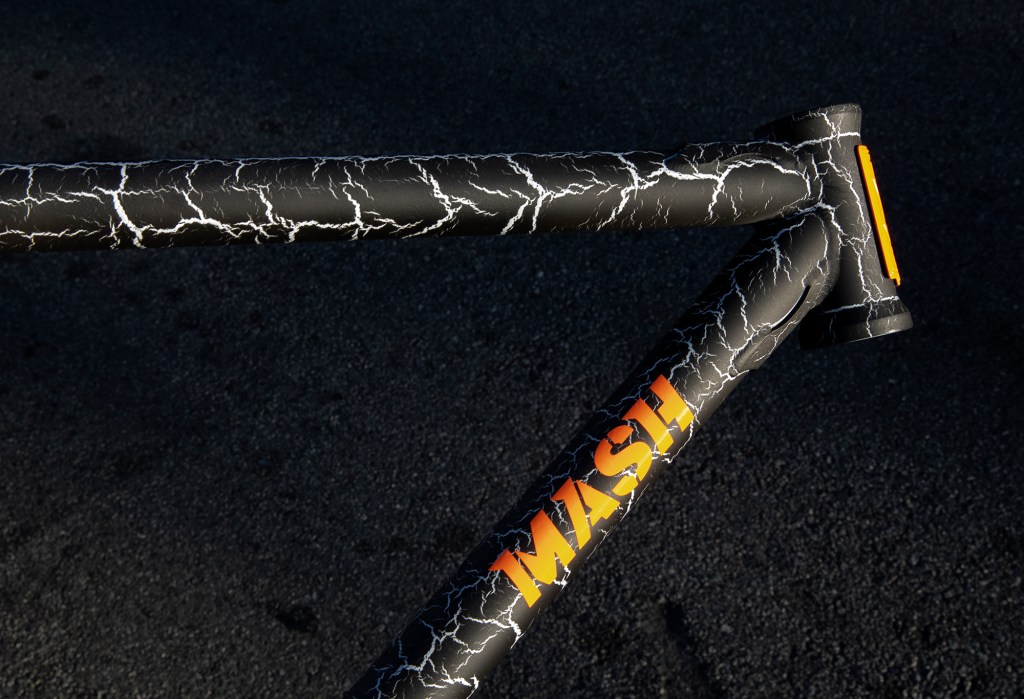 TUBING: MASH Butted Steel. For this frame we used more BMX style tubing that is larger in diameter for both the top tube and down tube. The top tube angle has also been dropped as it descends to the seat tube. Making it easier to get more height out of bunny hops and allowing you to drop your knee over the bike. Which has its advantages when it comes to control and performing certain tricks.