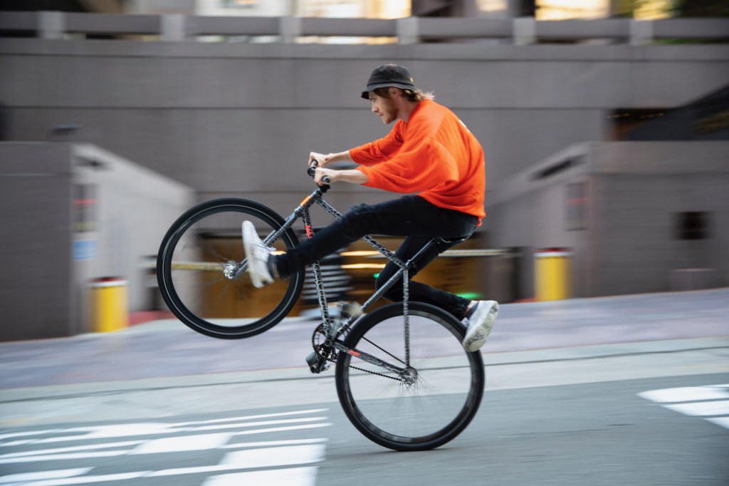 BB HEIGHT: The BB height on this bike is relatively high, yet low enough to feel stable while pedaling out wheelies. Once you put some 38-42c tires on, it boosts the bike so high off the ground that you effectively eliminate the threat of pedal strike all together. I’m able to lean into corners so deep on this bike. It’s absolutely insane. That coupled with some knobby tires make this bike a cornering monster.