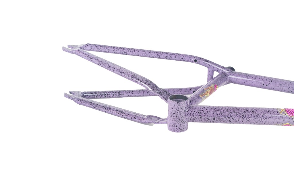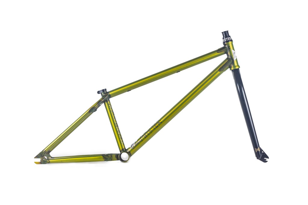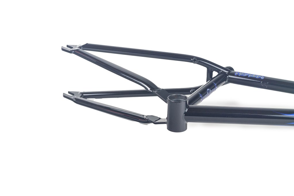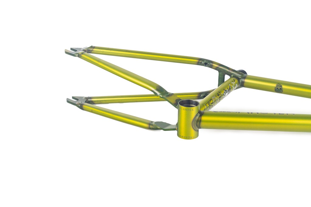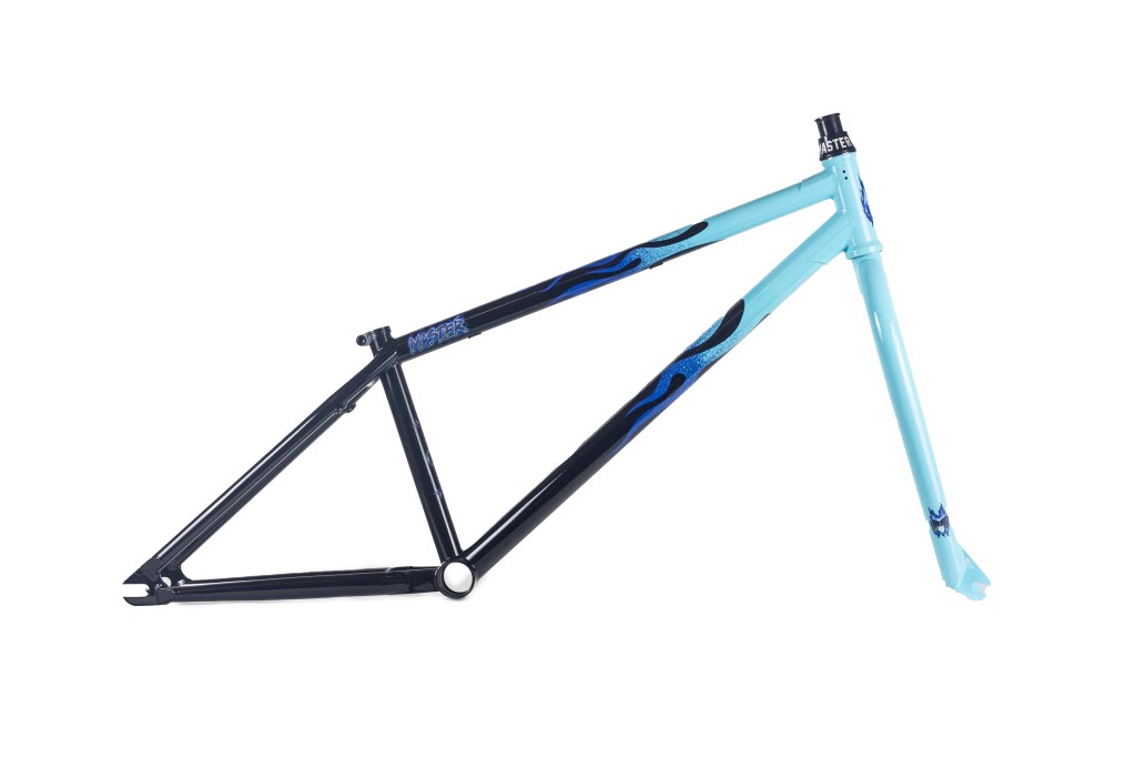 This frame is made from 4130 heat treated chromoly and features an integrated headtube drilled for gyro tabs, gusseted top tube and down tube, Mid BB shell, butted seattube, removable U-brake mounts, and yoke style bb cluster for maximum chainring and tire clearance. The Master Hightek frame has the shortest FGFS wheelbase with full barspin clearance.