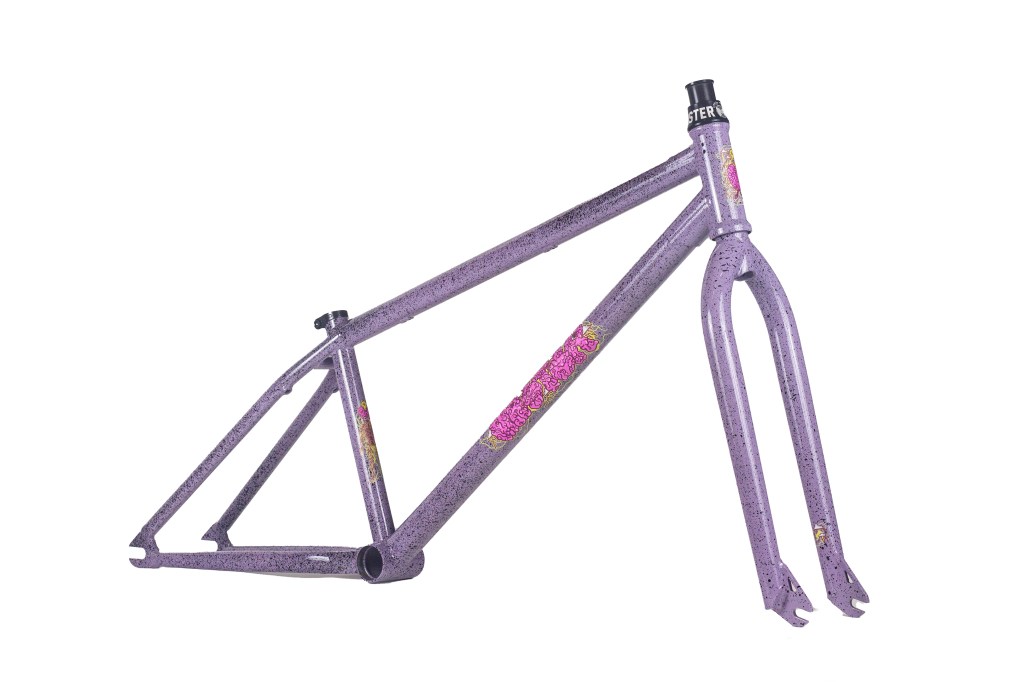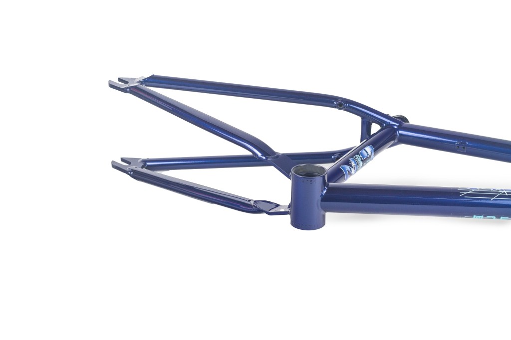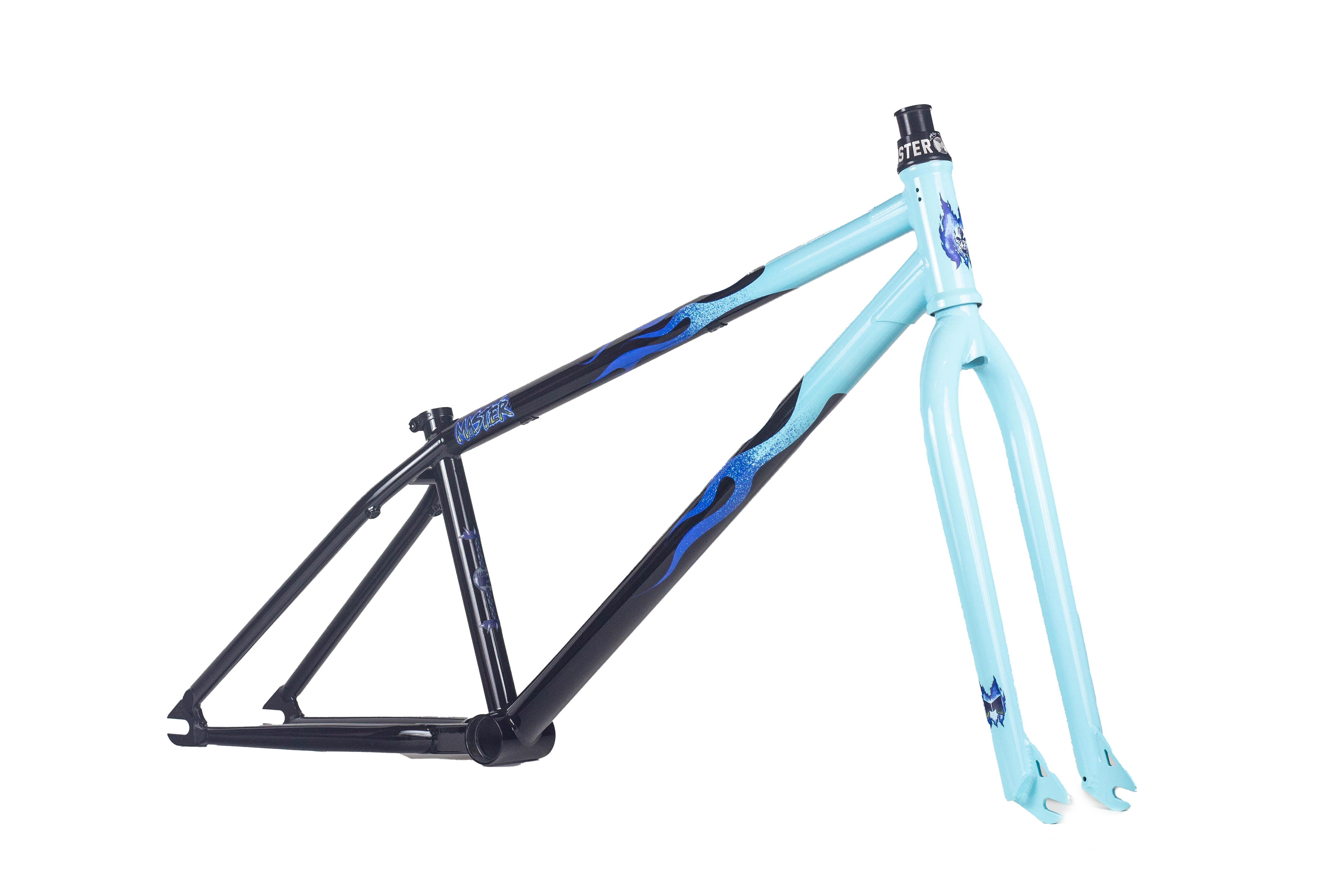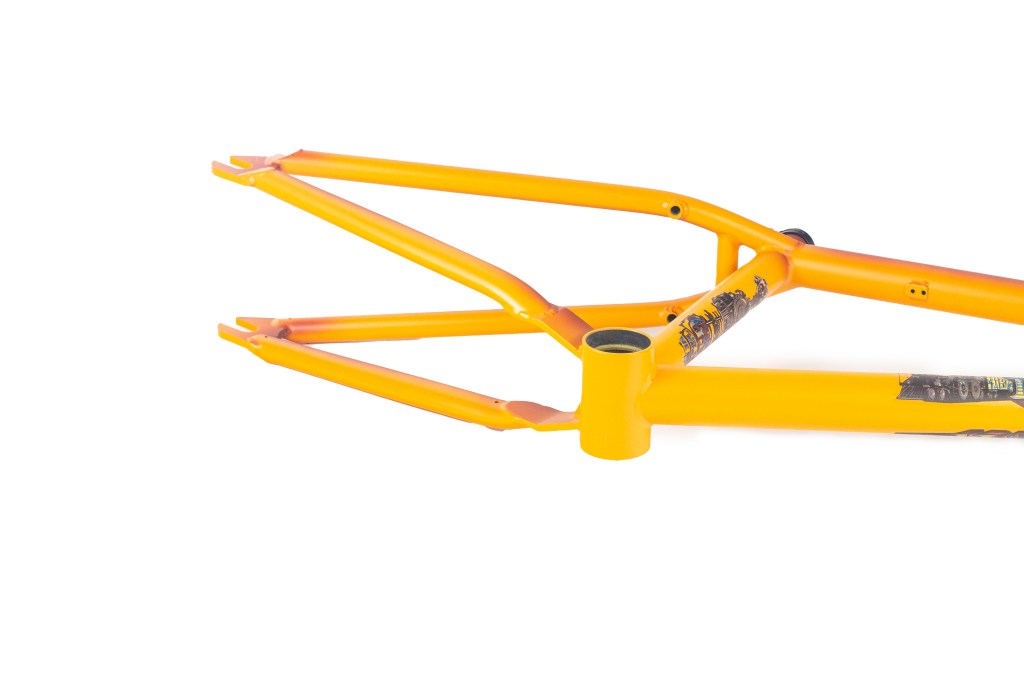 This frame is made from 4130 heat treated chromoly and features an integrated headtube drilled for gyro tabs, gusseted top tube and down tube, Mid BB shell, butted seattube, removable U-brake mounts, and yoke style bb cluster for maximum chainring and tire clearance. The Master Hightek frame has the shortest FGFS wheelbase with full barspin clearance.