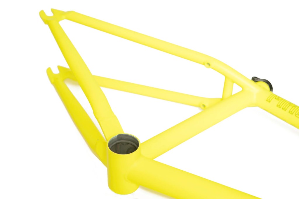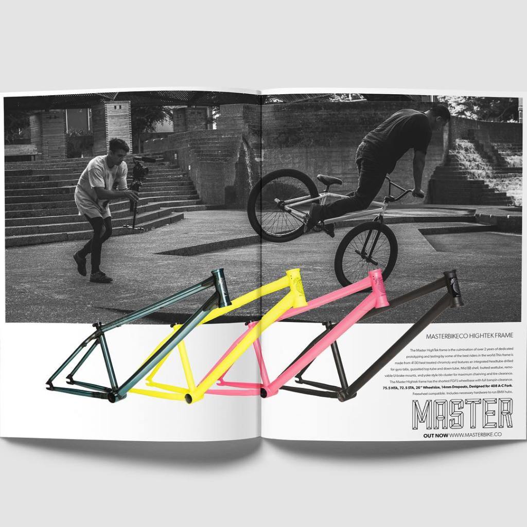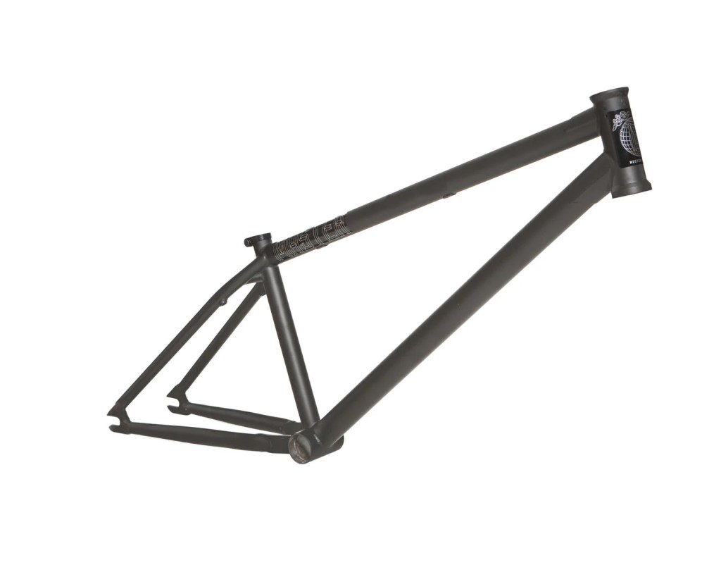 This frame is made from 4130 heat treated chromoly and features an integrated headtube drilled for gyro tabs, gusseted top tube and down tube, Mid BB shell, butted seattube, removable U-brake mounts, and yoke style bb cluster for maximum chainring and tire clearance. The Master Hightek frame has the shortest FGFS wheelbase with full barspin clearance.