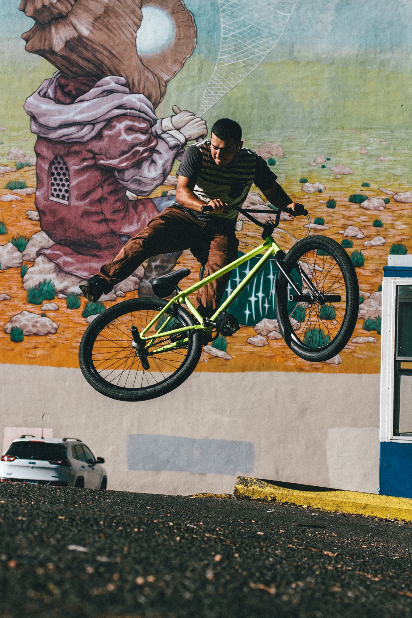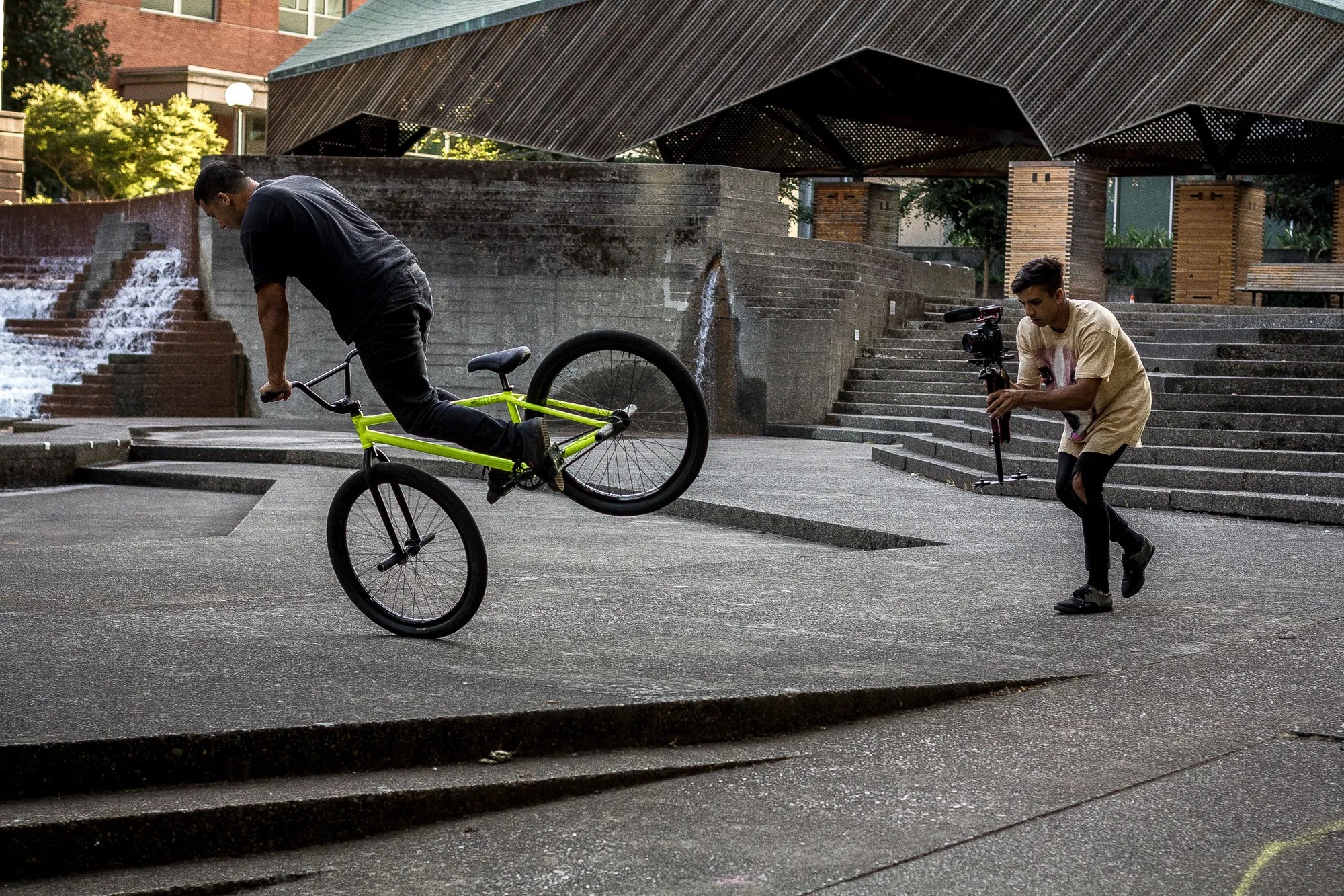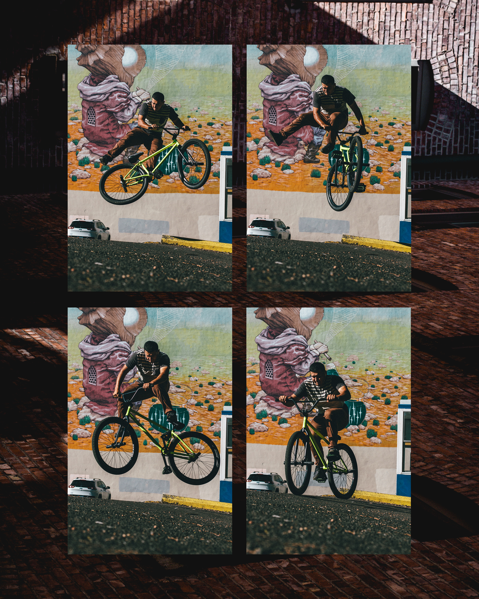 After riding Fixed Gear only for years, Miguel tried BMX around 2017 to further his overall bike control and take the BMX tricks he learned back to a Fixed Gear. This is how he learned tailwhips and various grind tricks so well.
