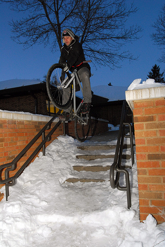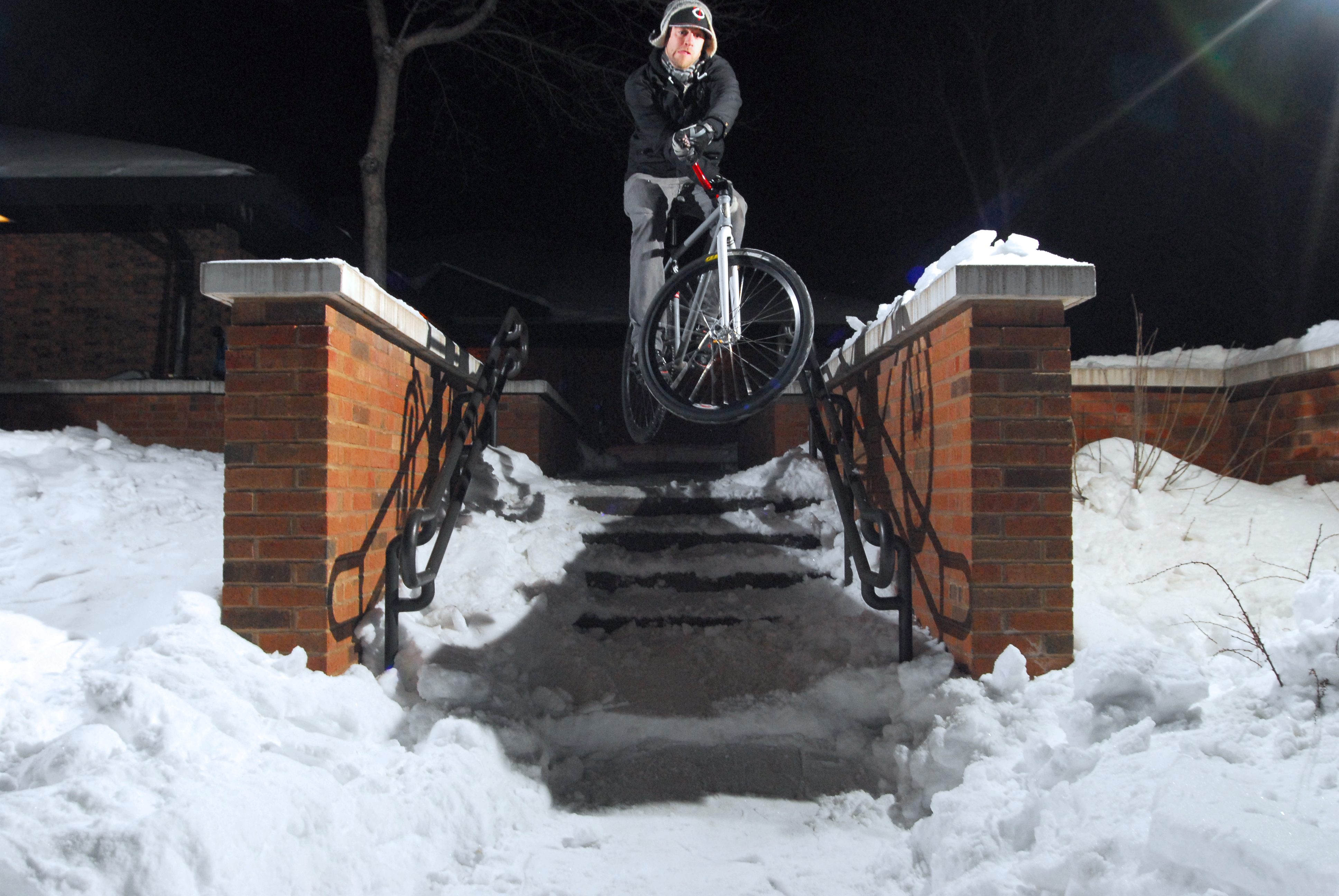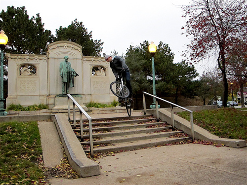 In June of 2009, Mike became the first person to ever grind a handrail on camera (the first actually being Jesse Hilliard on the same rail, but it was only shot as a photo).