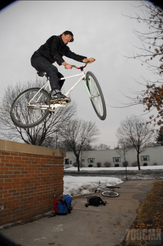 The godfather of progressive trick riding in the Minneapolis area, Mike Carney was one of the first riders in the area to make the jump from flat ground Trick Track style riding to more BMX oriented style riding.