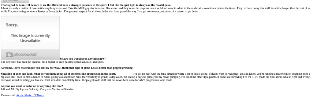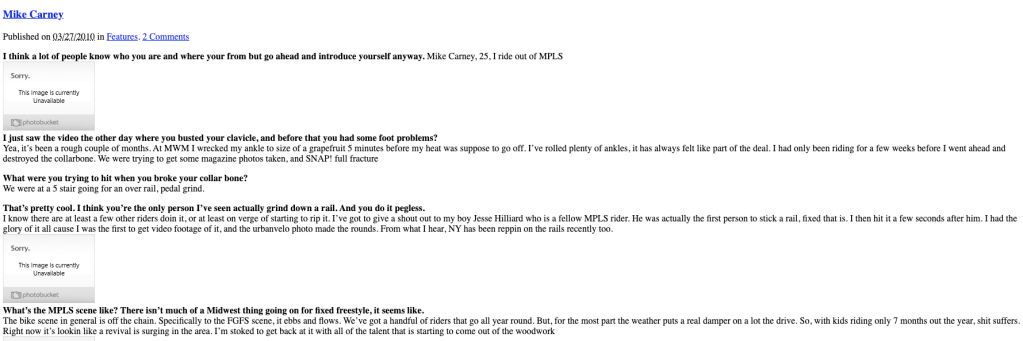 Being in the Minneapolis area, he often rode with Jeff Frane, founder of All-City Cycles and became one of their first team riders. He was one of the first to try out and ride the famous All-City Dropout frameset.