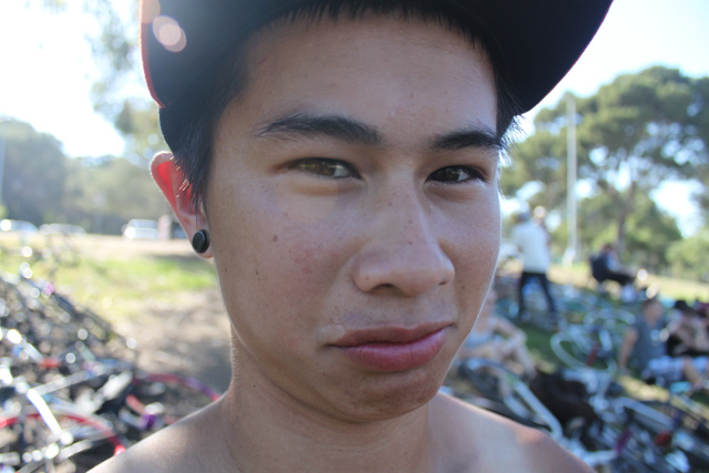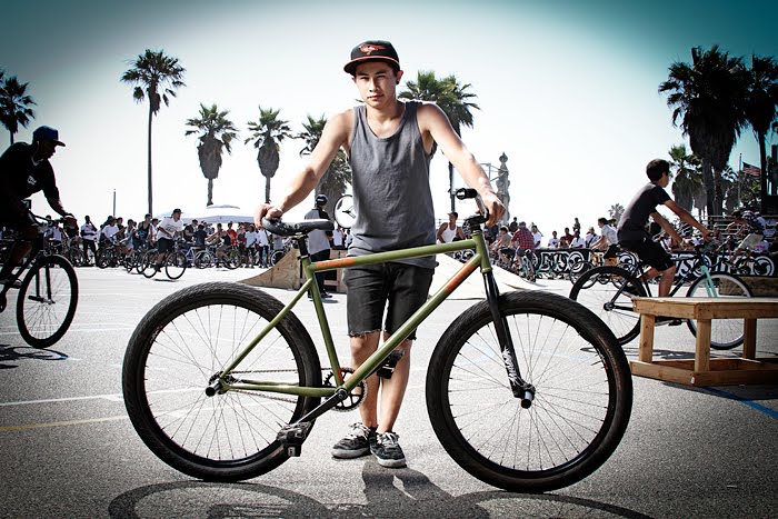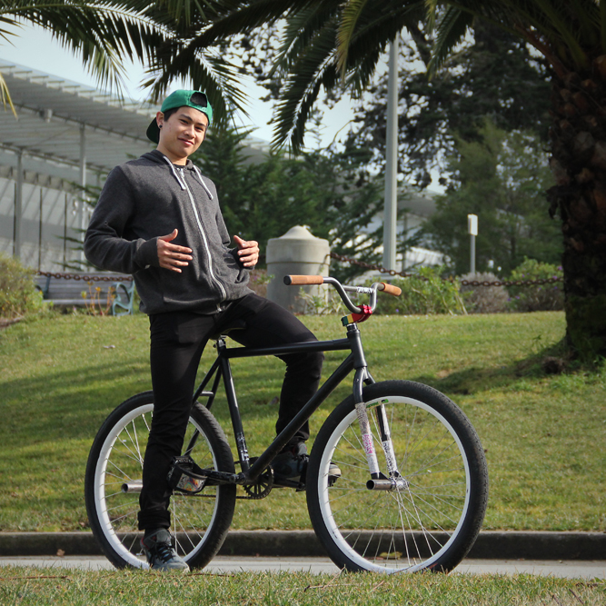 SoCal native Mike Dinh became well known throughout the FGFS scene for both his height and his massive barspins. Frequently surrounded by Fixed Gear greats, Mike had quick progress on the bike. The switch to 26″ wheels also helped him massively, as the bike was now his size.