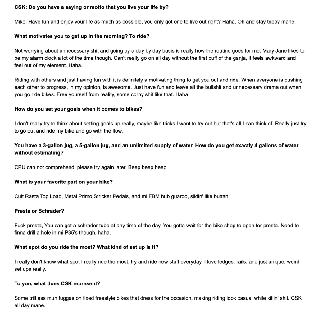 Mike had no shortage of sponsors, going from RYD Bikes, to Leader Bikes, to Livery Design Gruppe, and then finally finishing off his career riding for himself with no frame sponsor. In 2012 Mike Dinh announced his retirement from the sport, which sparked the #ripmikedinh meme movement followed by 3 edits from different filmers being released to flush out all. ofhis leftover footage.