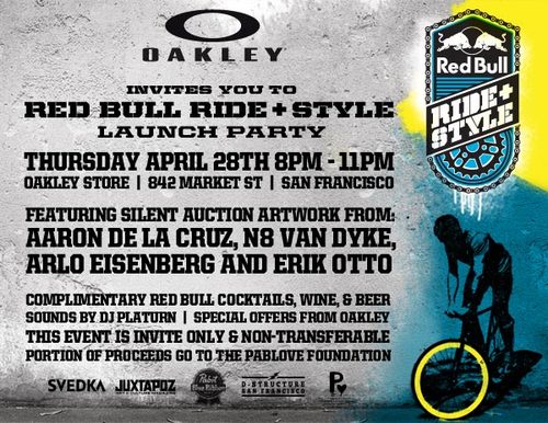 Red Bull Ride + Style 2011 was a fixed gear freestyle and track racing event hosted by Red Bull at Justin Herman Plaza in San Francisco. It was the first of 4 annual events in the series. This was the first time a fixed gear freestyle competition was given a mainstream spotlight. The trick portion of the event was invite only to compete.