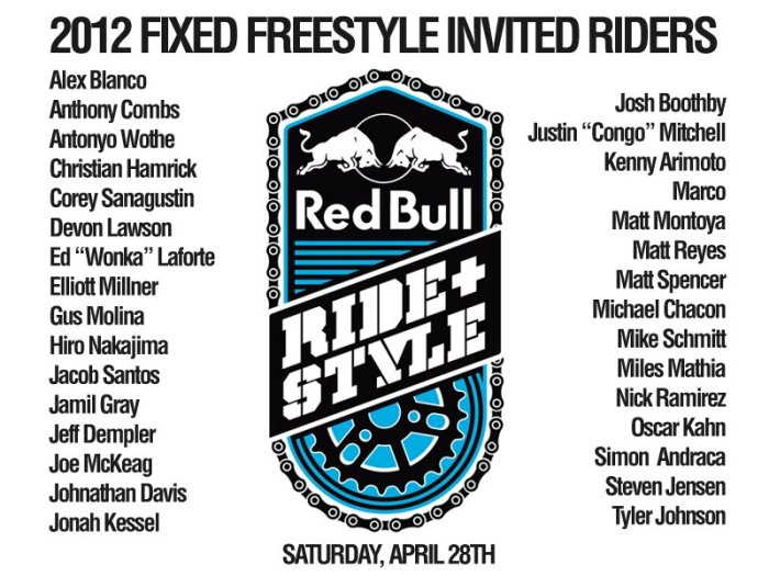 Red Bull Ride + Style 2012 was the 2nd of 4 annual fixed gear freestyle and track racing events hosted by Red Bull at Justin Herman Plaza in San Francisco. The trick portion of the event was invite only to compete.