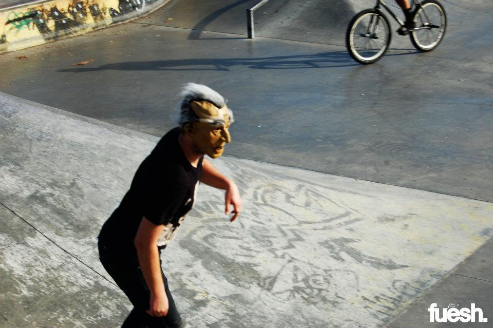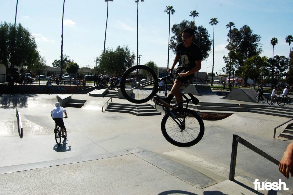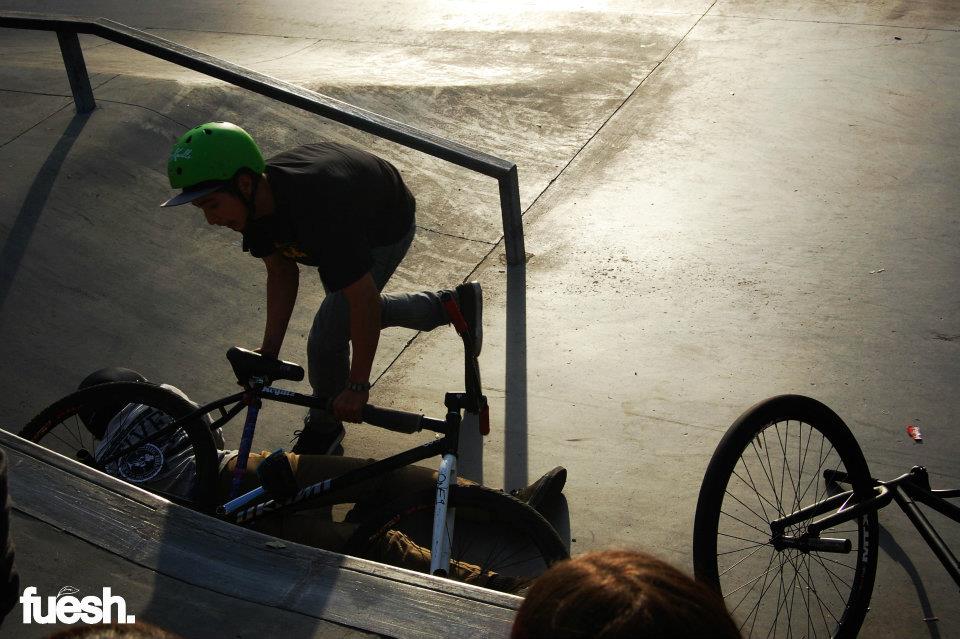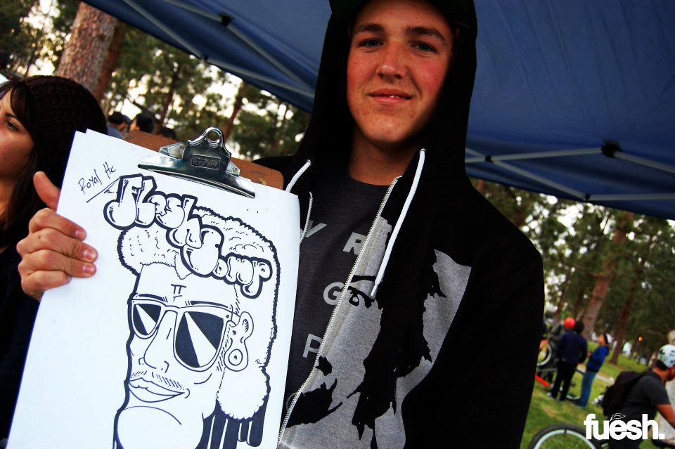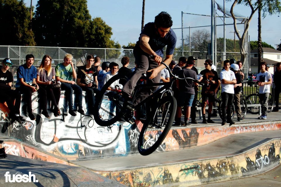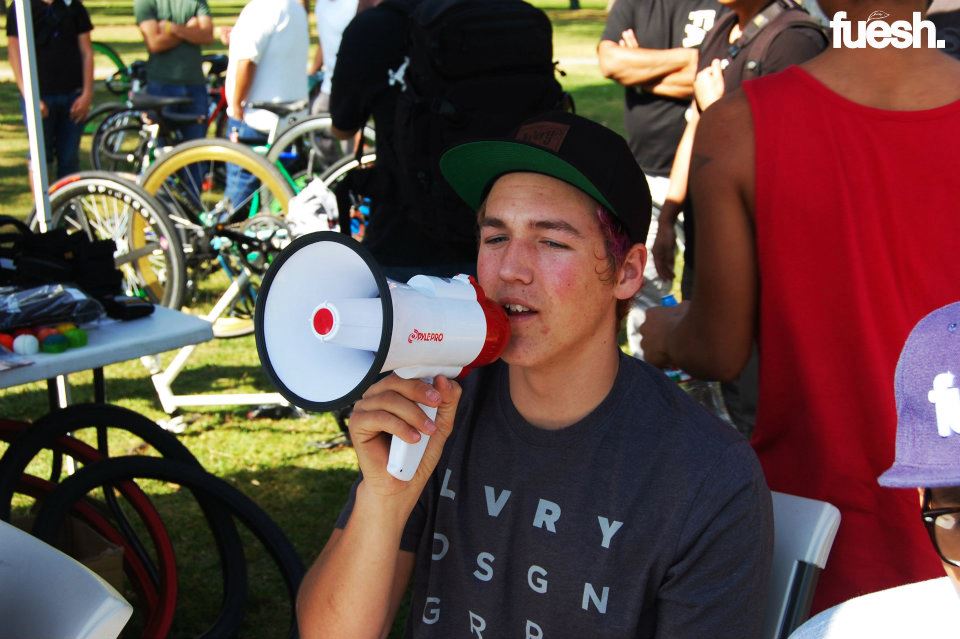 The Royal HC Flash Comp was an AM only competition hosted by Paul with Royal HC in Long Beach, CA. The location of the competition was secret, so everybody met at City Grounds bike shop and rode to a mystery spot from there, which ended up being Houghton Skatepark.