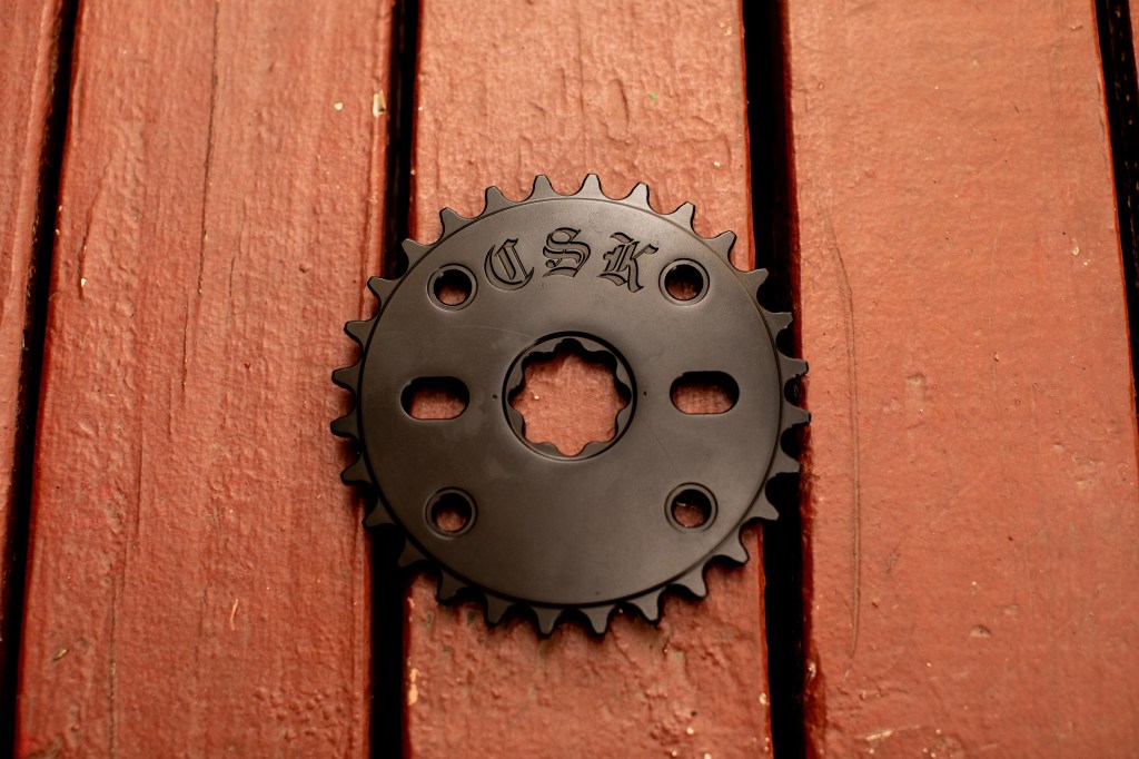 We designed some 25 and 28 tooth sprockets that are compatible with Profile steel spline drive inserts and machined to accept select 4 bolt pattern nylon guards.