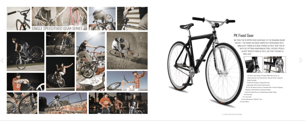 We took the PK Ripper fixed gear back to the drawing board for 2011. The frame has been completely redesigned with 6066 alloy tubing & is now strong as heck. Pair this up with 32c Vittoria Randonneur tires, Odyssey pedals, & heat treated forks & you’ll see that this bike is 100% legit.