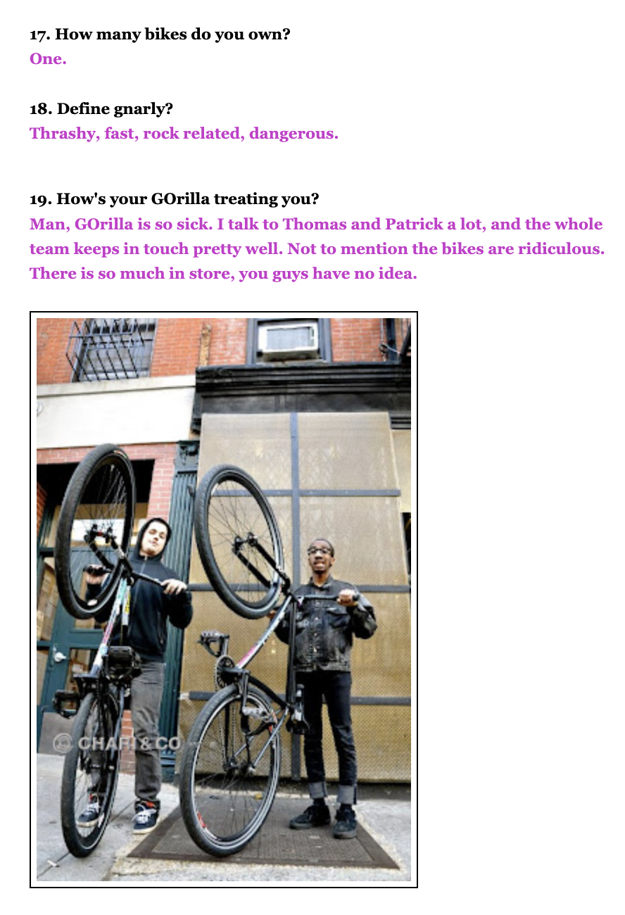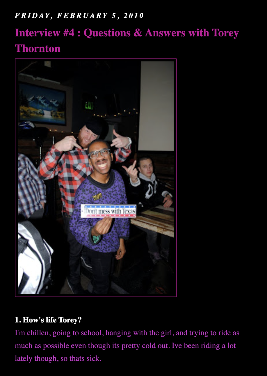 Soil Thornton (formerly known as Torey Thornton) is a former professional FGFS rider originally from Macon, Georgia. They later moved operations to New York City and became a staple and icon in the New York scene and the entirety of the fixed gear world.
