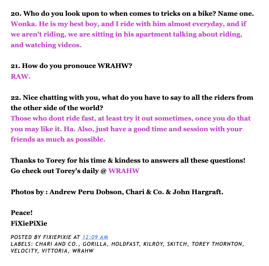 - Fixie Pixie interview