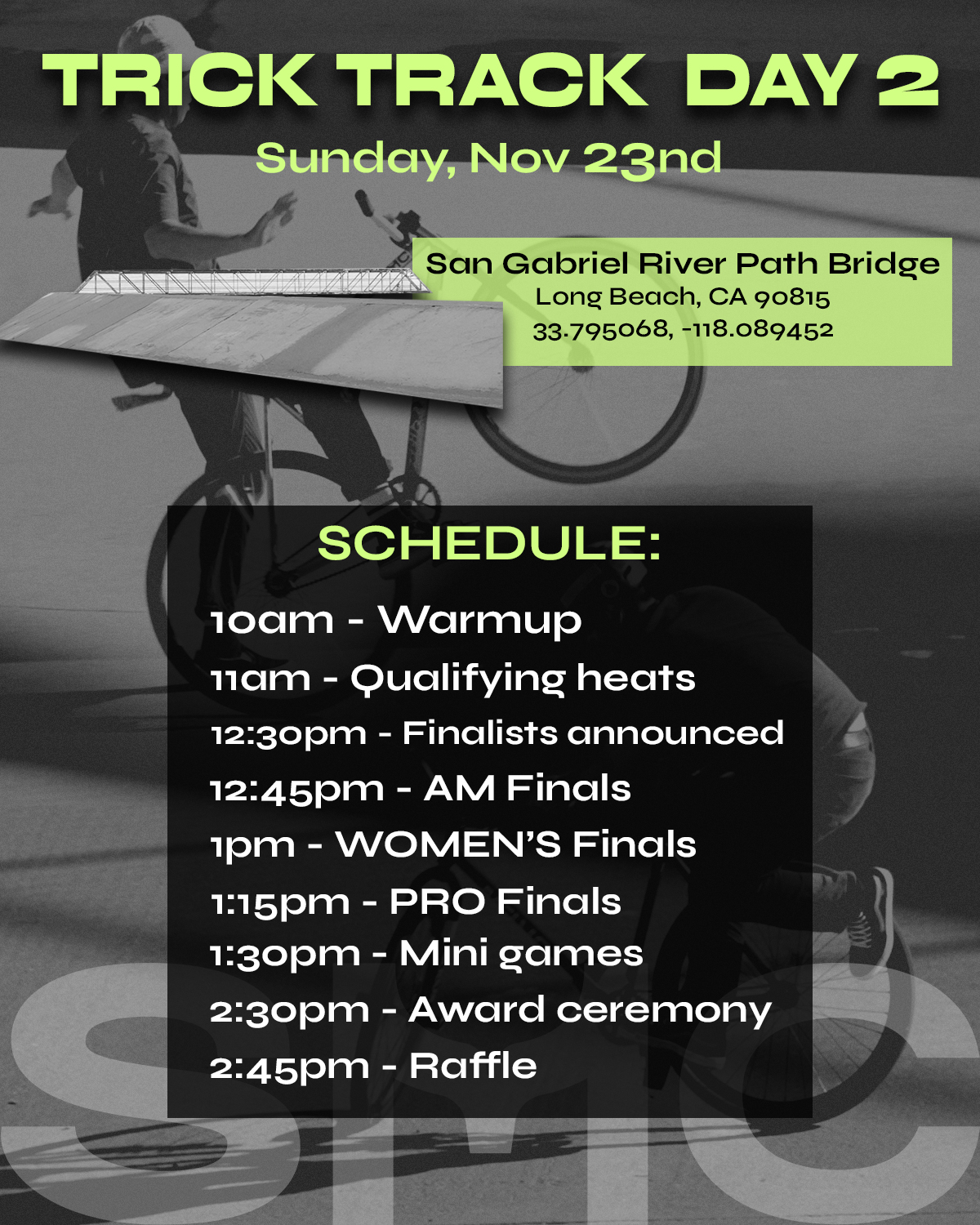 The world renown Suck My Comp FGFS + Trick Track 2-day competition is back for our 8th year to showcase the worlds best Fixed Gear trick riders and celebrate this scene we love!