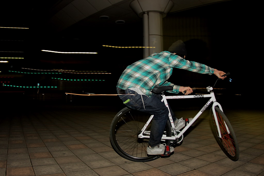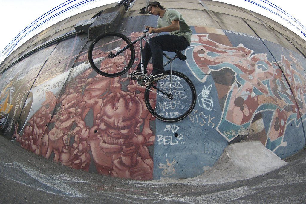 As of writing this, Nasty is still riding often and does it in his own fashion. Ignoring trends, he remains loyal to his own definition of Fixed Gear Freestyle: pegless, 700c, going fast, and doing skids.