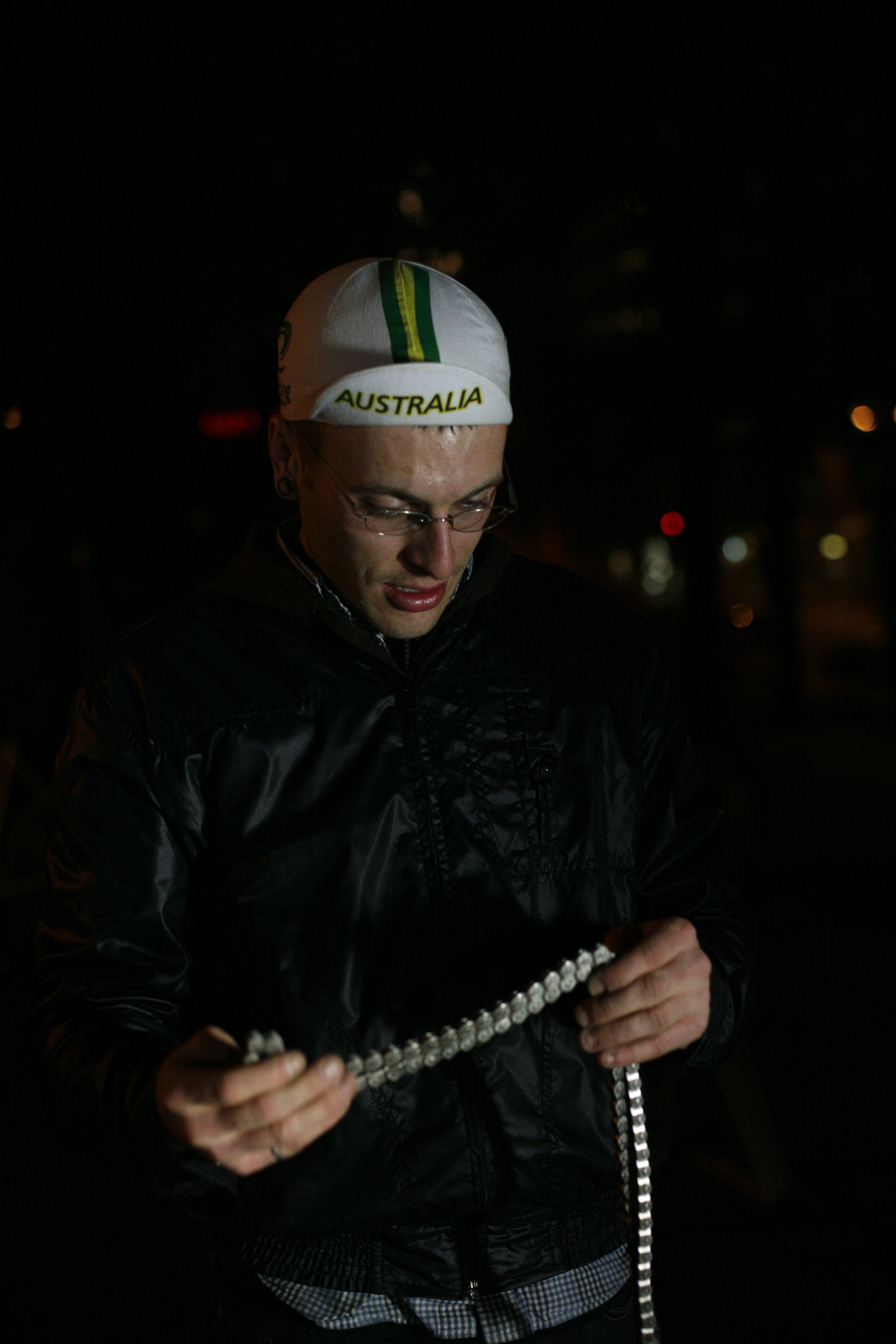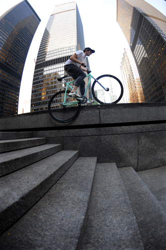 Tom Mosher is a Canadian based former professional footbag player and Fixed Gear Freestyle rider. Tom is widely considered one of the key riders in popularizing the use of Fixed Gear bikes for trick riding, creating and starring in videos from 2007-2012.