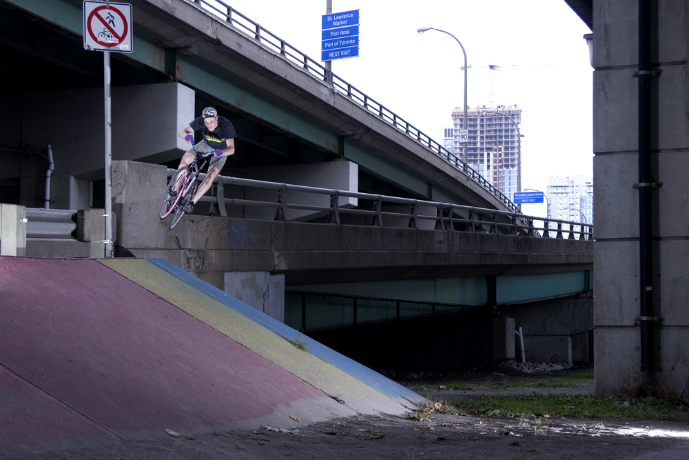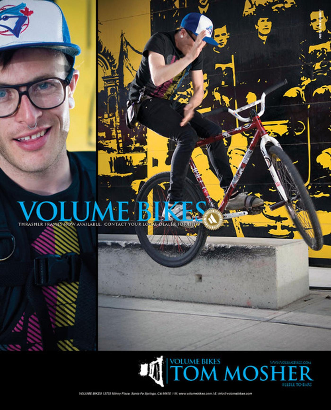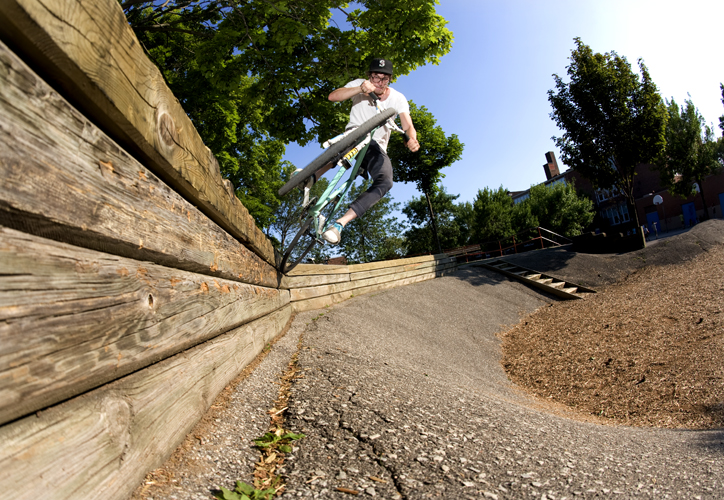 In 2009 Tom was among the first to put pegs on a trick bike. This created controversy and sparked debate about the future of the sport. Two years later the scene would catch up with the popularization of pegs and 26″ wheels.