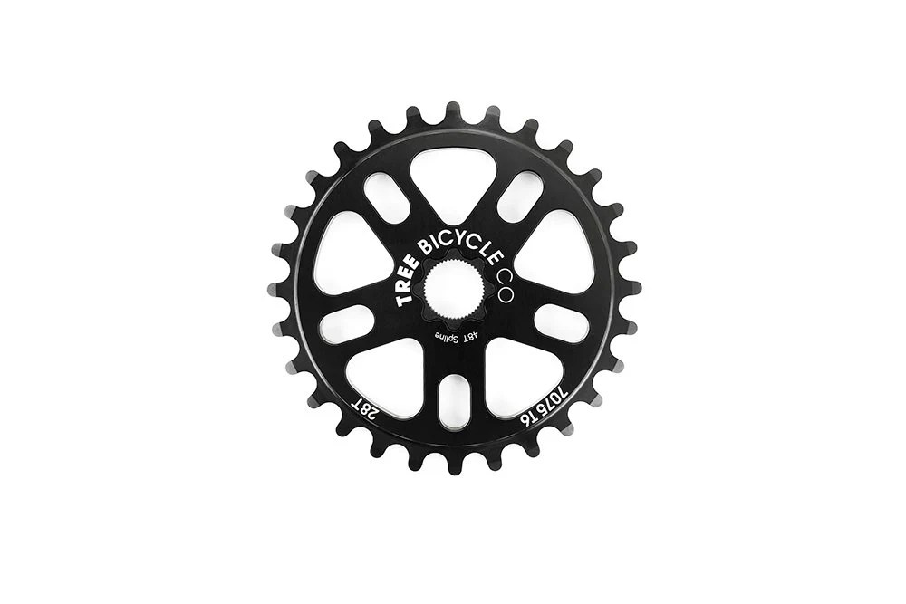 We introduced using 7075 T6 aluminum for sprockets to BMX in 2002 with the Tree Original sprocket, well back then it was just called the Tree sprocket. At the time people had to change their 6061 sprockets every few months. I now see photos quite often from people that have been running the same sprocket for 6+ years. It is currently the strongest sprocket available.
