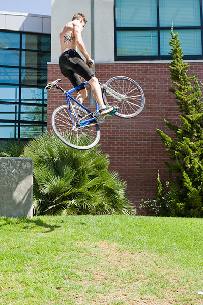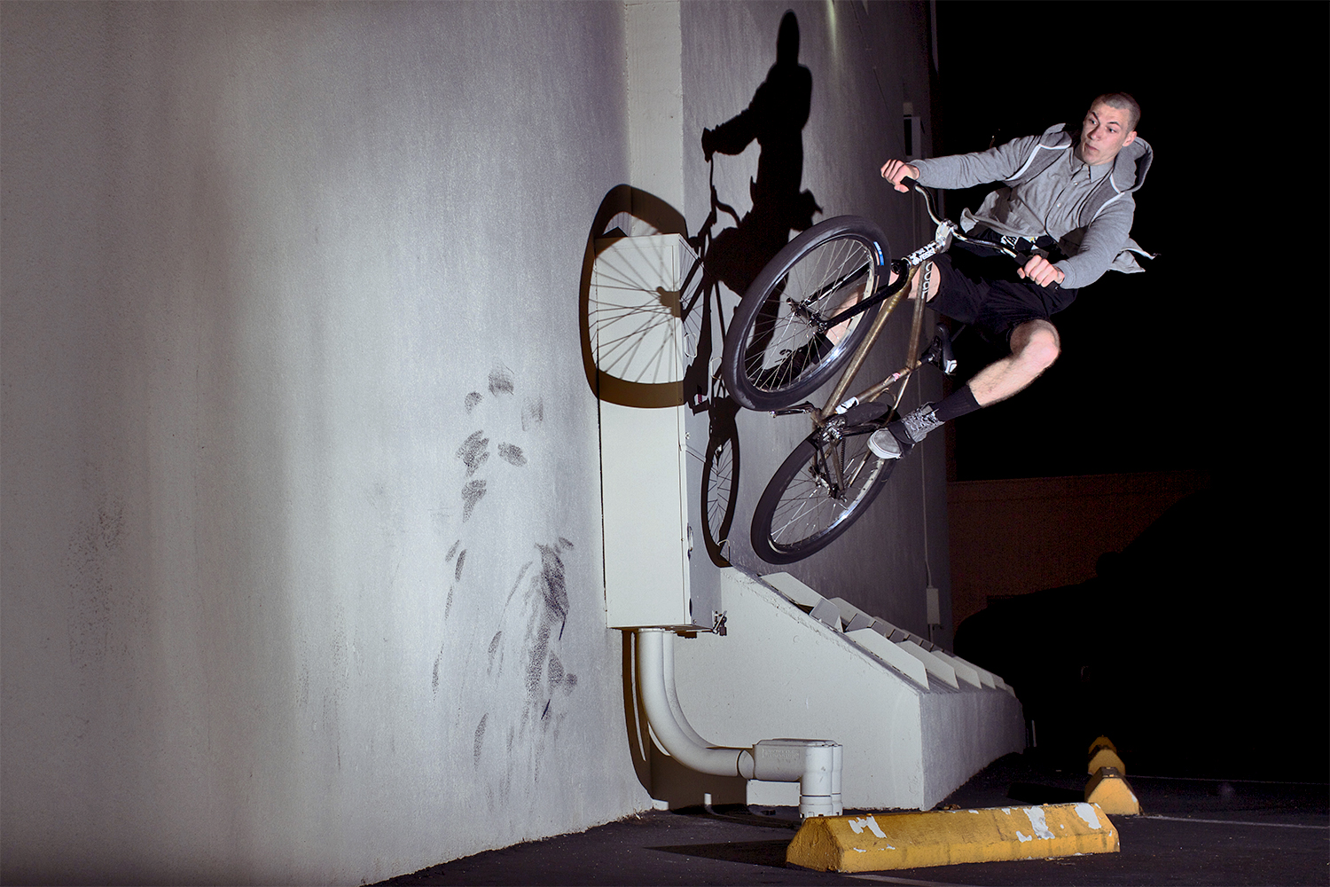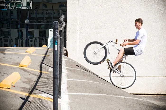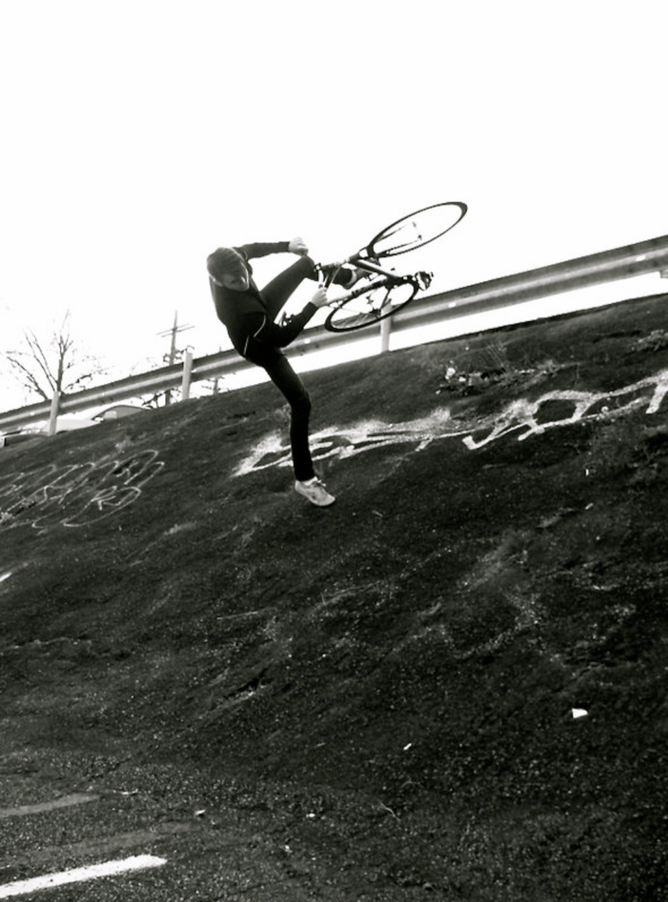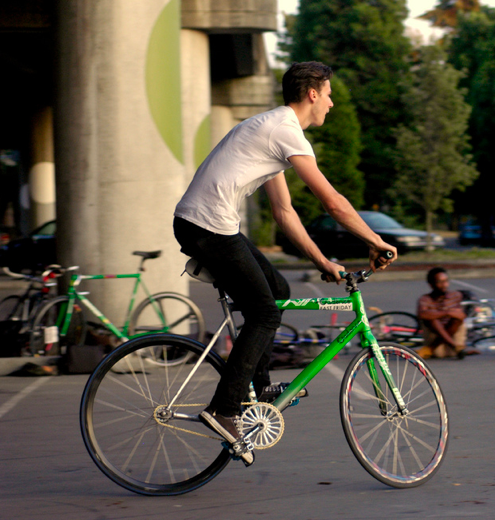 Tyler is often looked at as one of the most talented people to touch a fixed gear bike. Seemingly turning everything he touches to gold, a fixed gear bike was no exception. Videos on his Trek track bike started emerging in 2008, instantly gaining attention by the scene. His wheelie combos and subtle BMX influence were most notable. This would land him a sponsor with Leader Bikes.