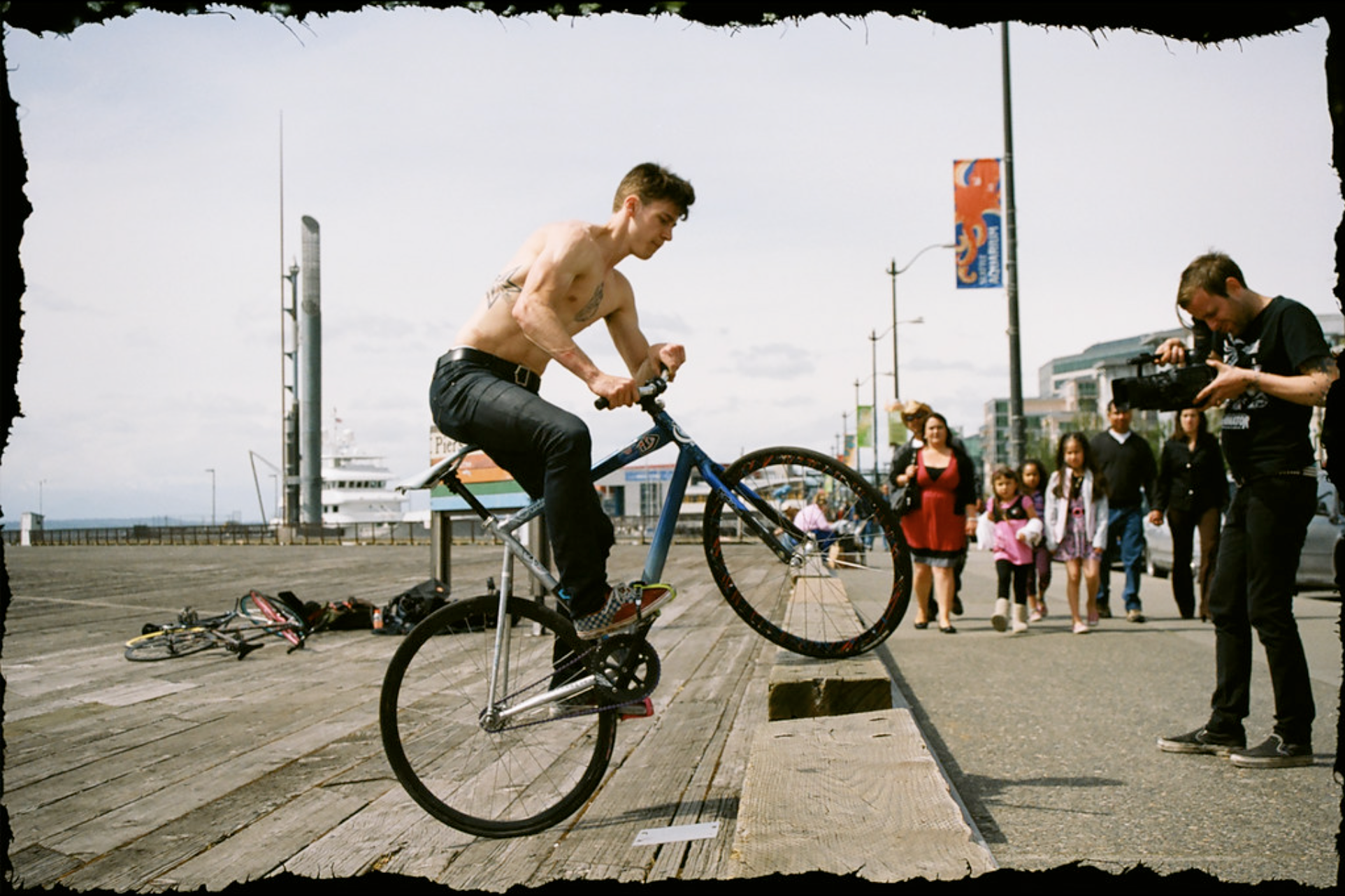 In 2009, The Revival DVD released which showcased the Seattle fixed gear scene. Tyler’s section in this video was groundbreaking at the time, showcasing multiple hop barspin variations, nose manuals, and the famous death truck at the end, which has yet to be recreated in fixed gear.